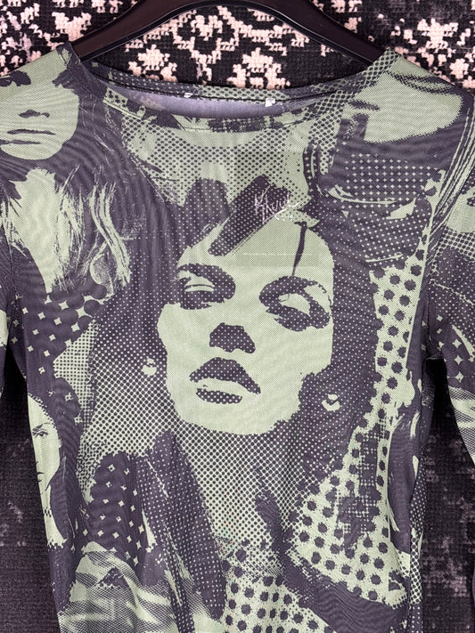 Women's Green Y2K Vibe Longsleeve Mesh Top