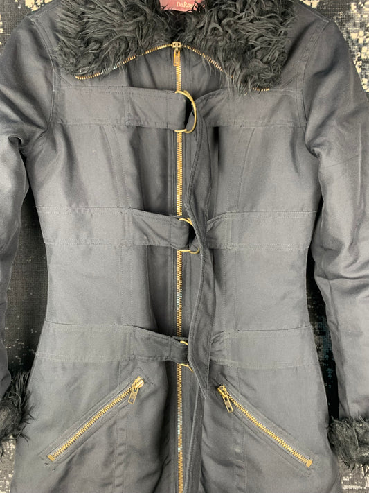 Women's Y2K Style Black Coat with Faux Fur Trim