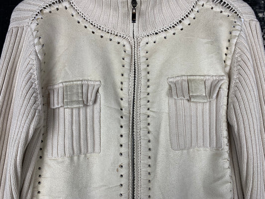 Women's Y2K Style Pierre Cavallo Off-White Ribbed Zip-Up Hoodie