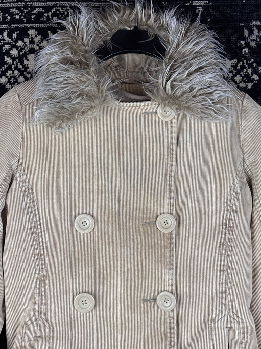 Women's Y2K Beige Corduroy Jacket with Faux Fur Trim