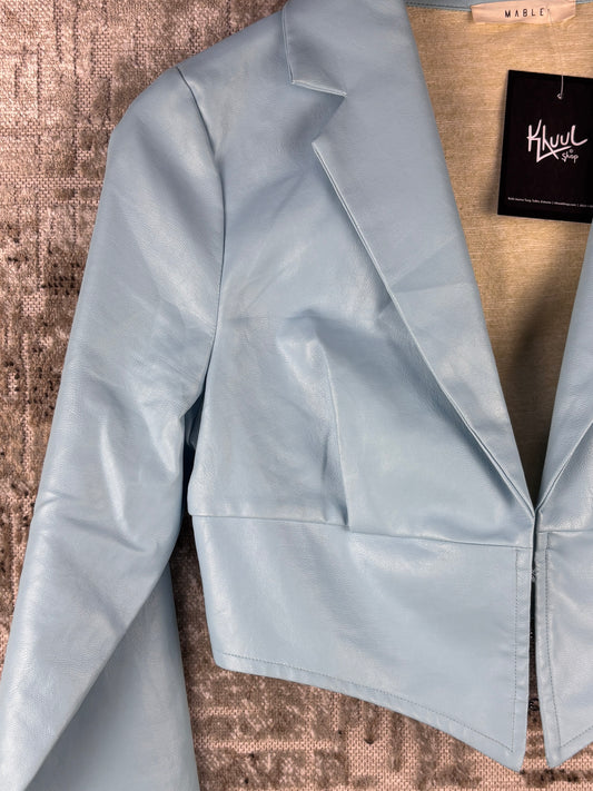 Womens Vintage Pastel Blue Leather Bolero Jacket