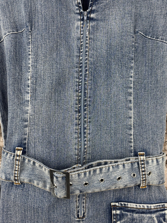 Womens Y2K Denim Belted Mini Dress