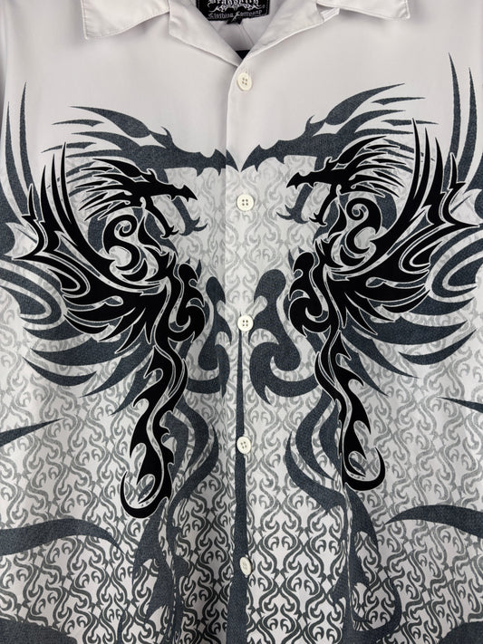 Men's Y2K Dragonfly Tribal White Shortsleeve Buttonup