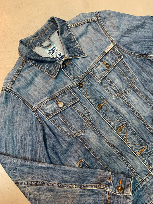 Y2K Women's Thigh-High Distressed Denim Peep-Toe Boots