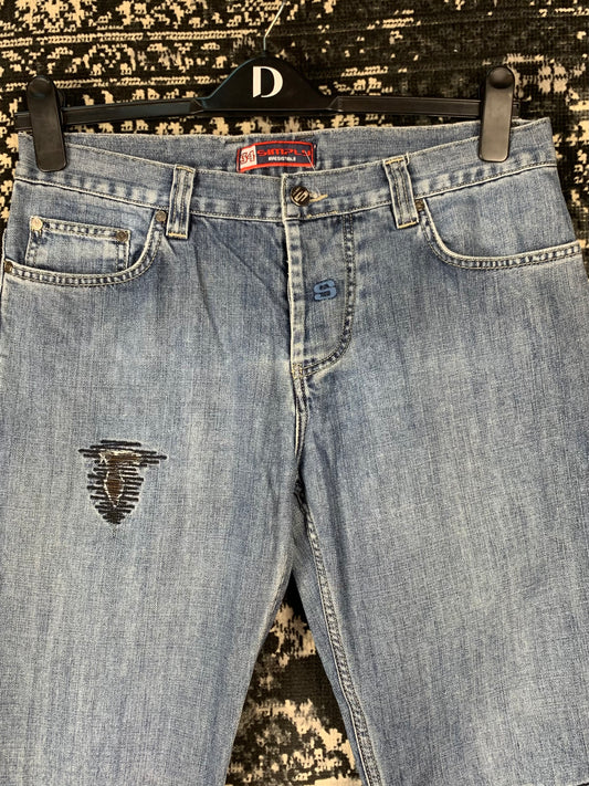 Womens Y2K Blue Denim Two Piece Set Embroidered Beaded Jacket
