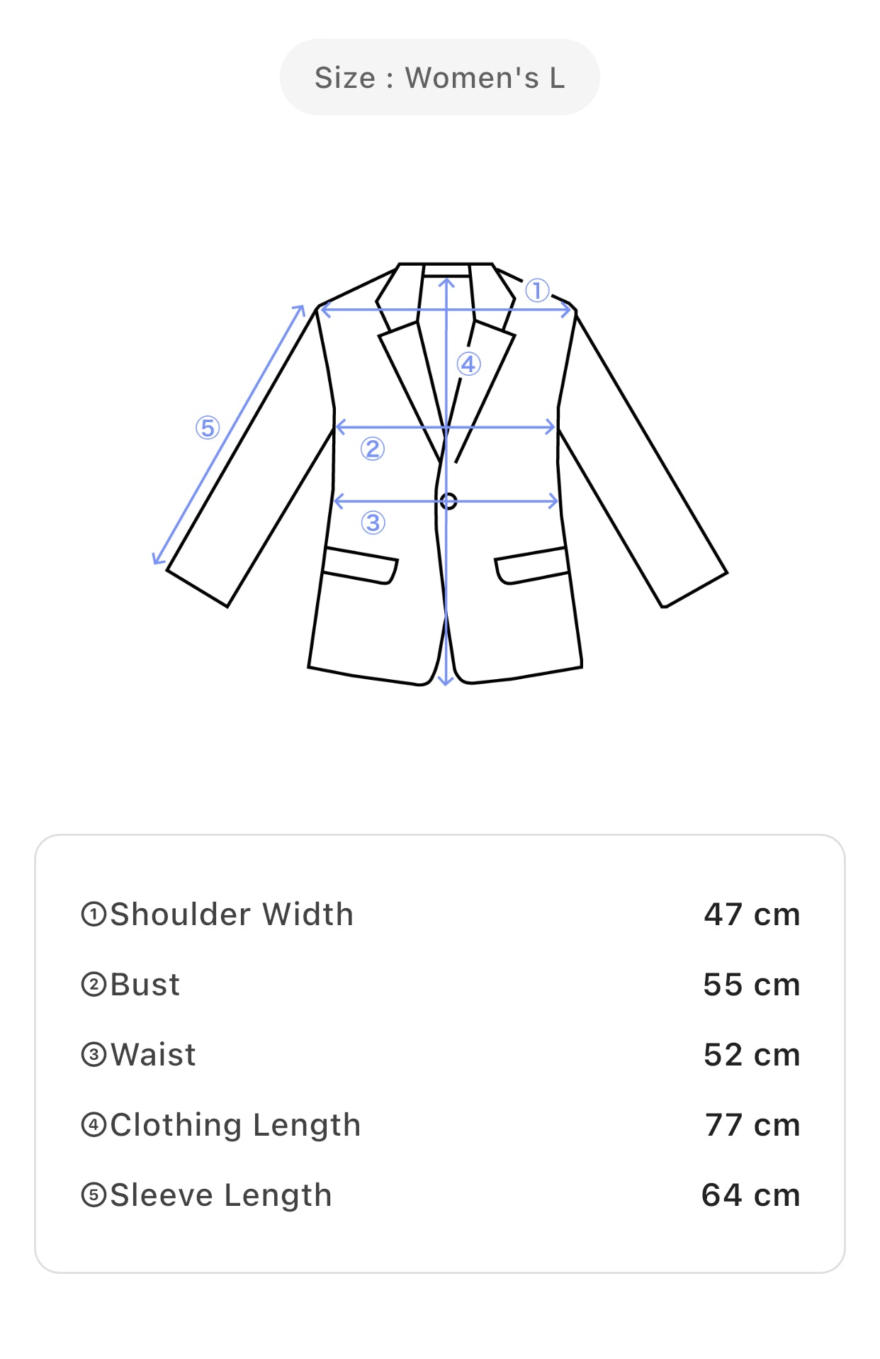 • Size: Unisex L, Shoulder Width 47 cm, Bust 55 cm, Waist 52 cm, Clothing Length 77 cm, Sleeve Length 64 cm