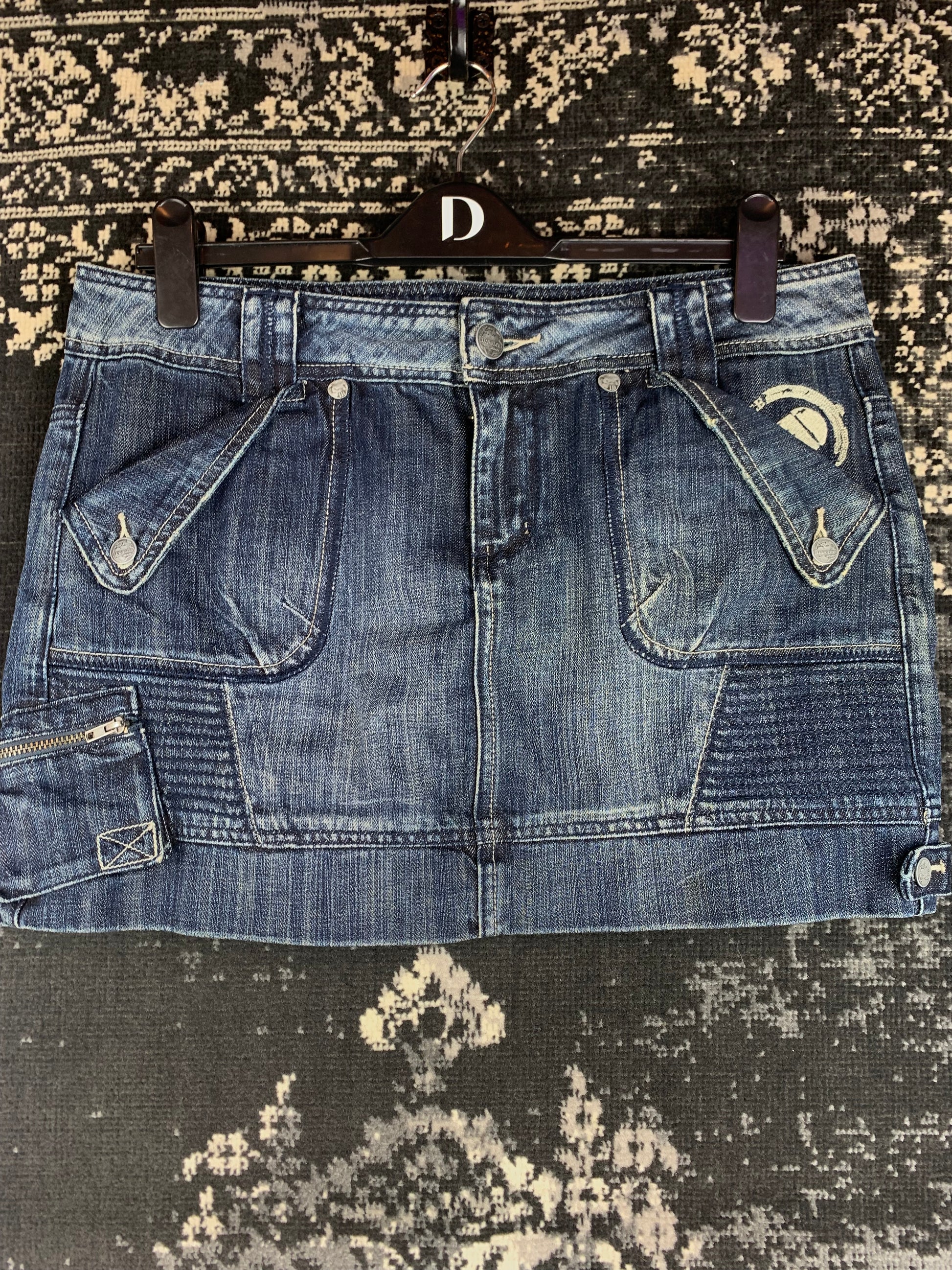 Y2K Vintage Il' Dolce Distressed Blue Mini Denim Skirt – Utility Pockets, Zipper Detail, Grunge Aesthetic – Size 40 (Women’s L)