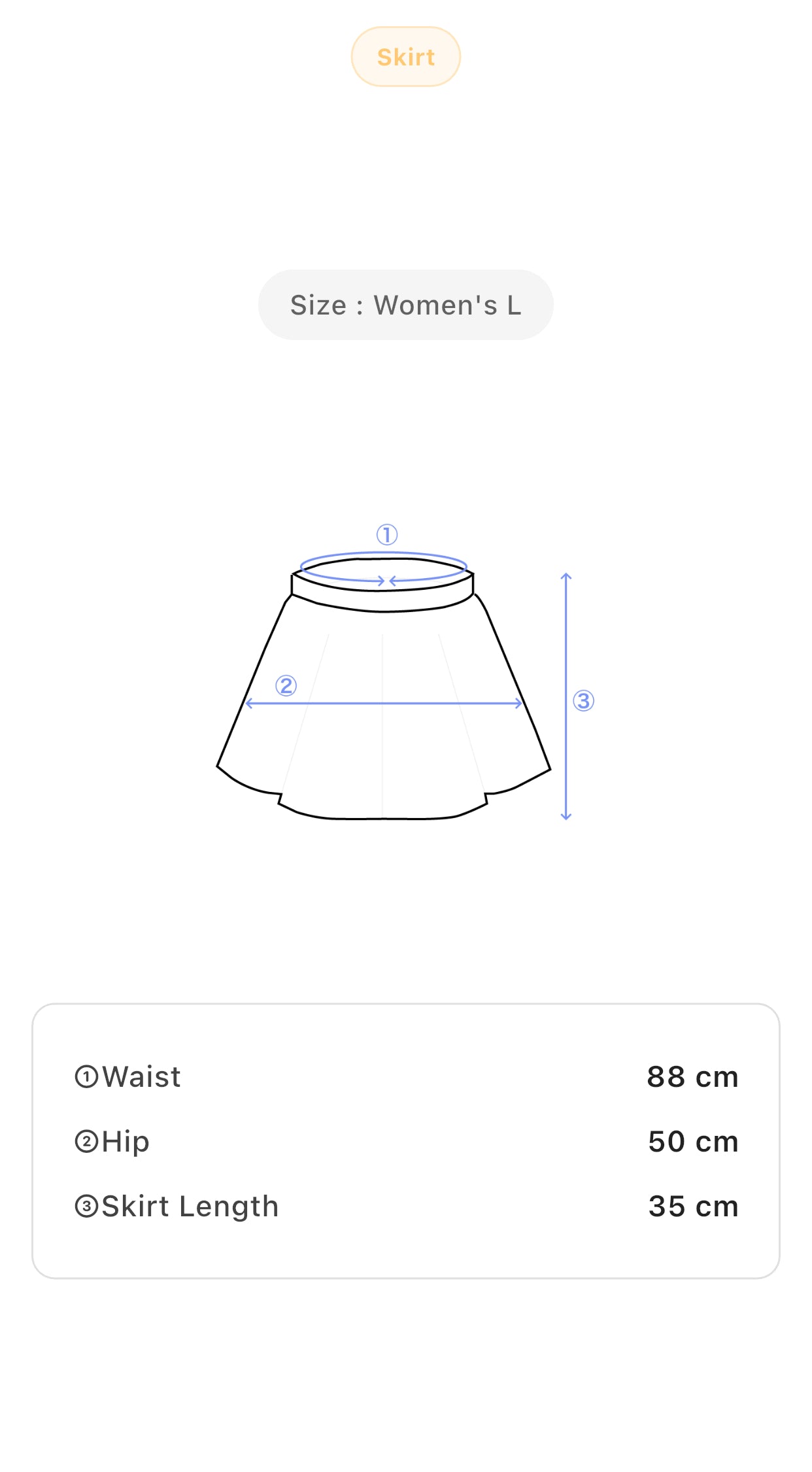 Size: Women’s L Waist: 88 cm Hip: 50 cm Skirt Length: 35 cm