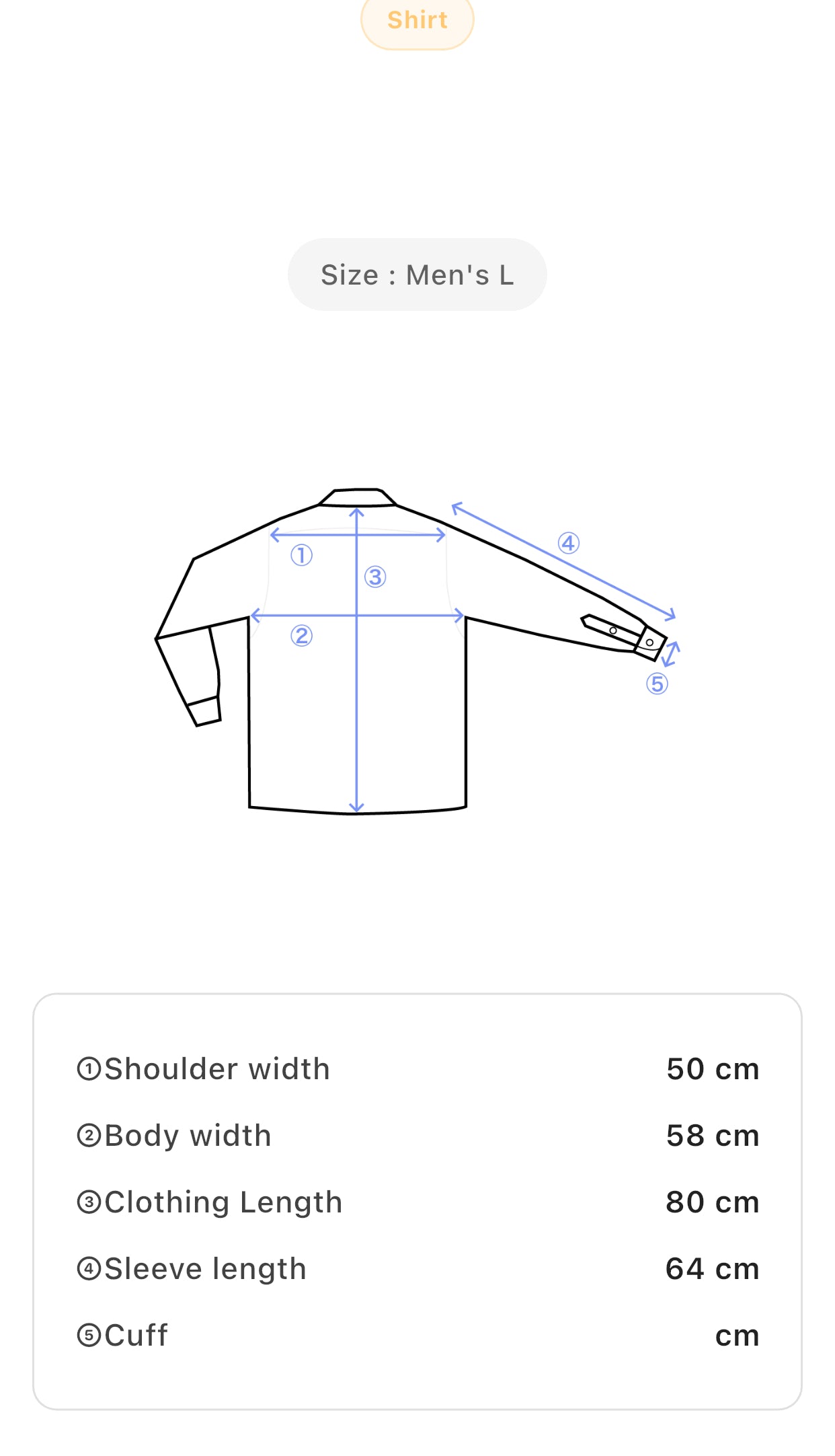 Size: Men's L — Shoulder Width: 50 cm, Body Width: 58 cm, Clothing Length: 80 cm, Sleeve Length: 64 cm