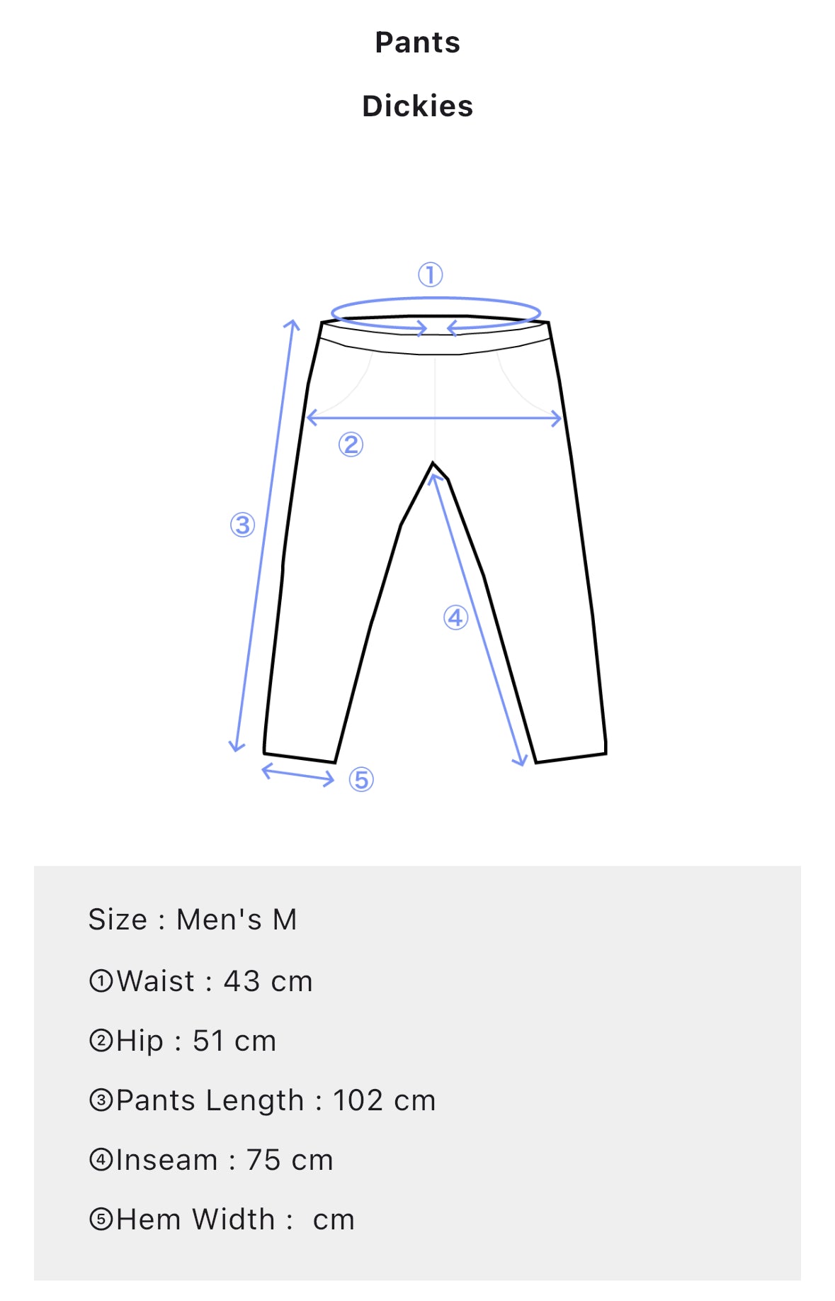 Size: Men’s M — waist: 43 cm, hip: 51 cm, pants length: 102 cm, inseam: 75 cm