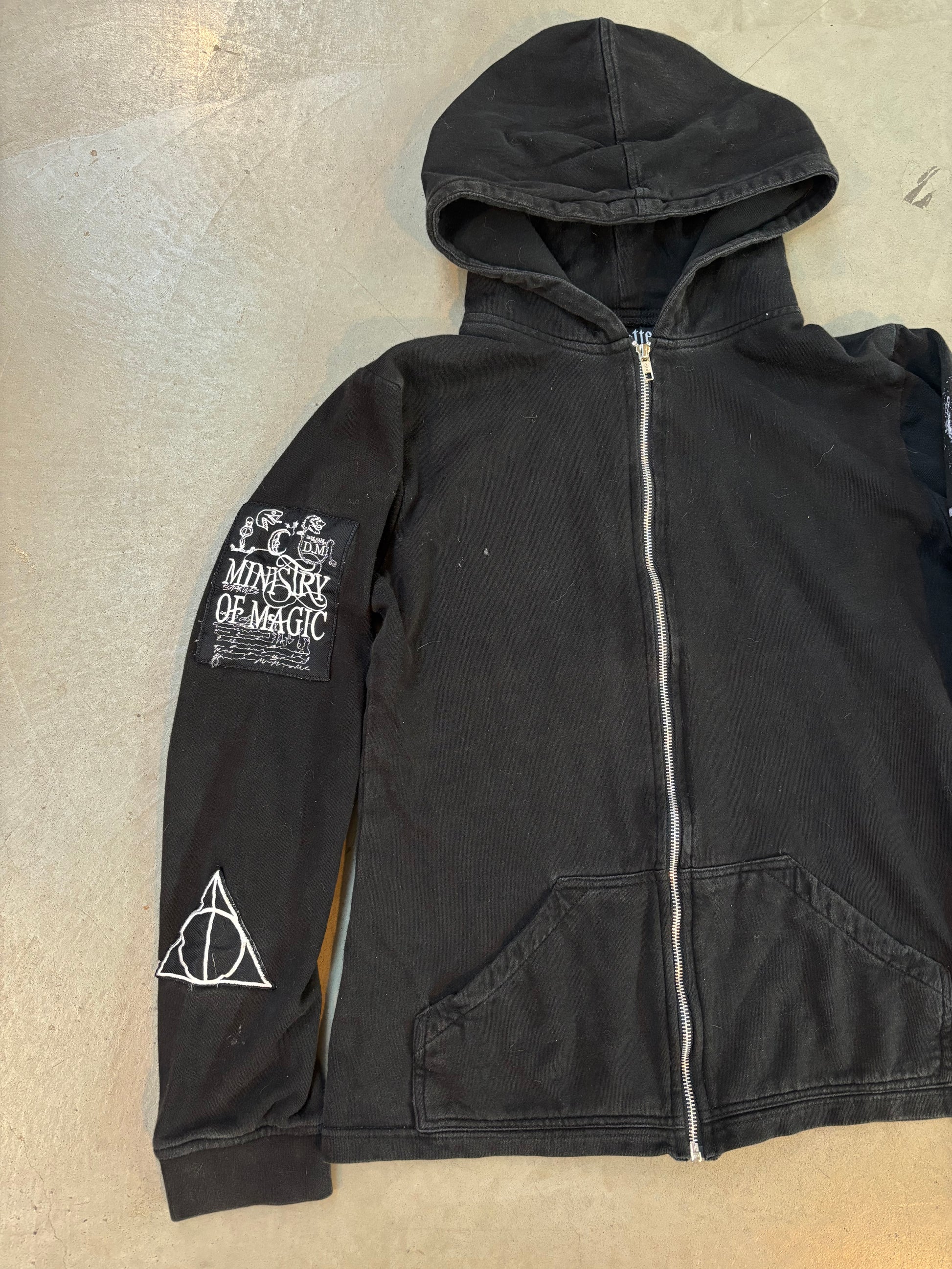 Harry Potter Zip Hoodie Unisex L Black Ministry Of Magic Deathly Hallows Symbol Long Sleeve Graphic Wizard Fandom Jacket