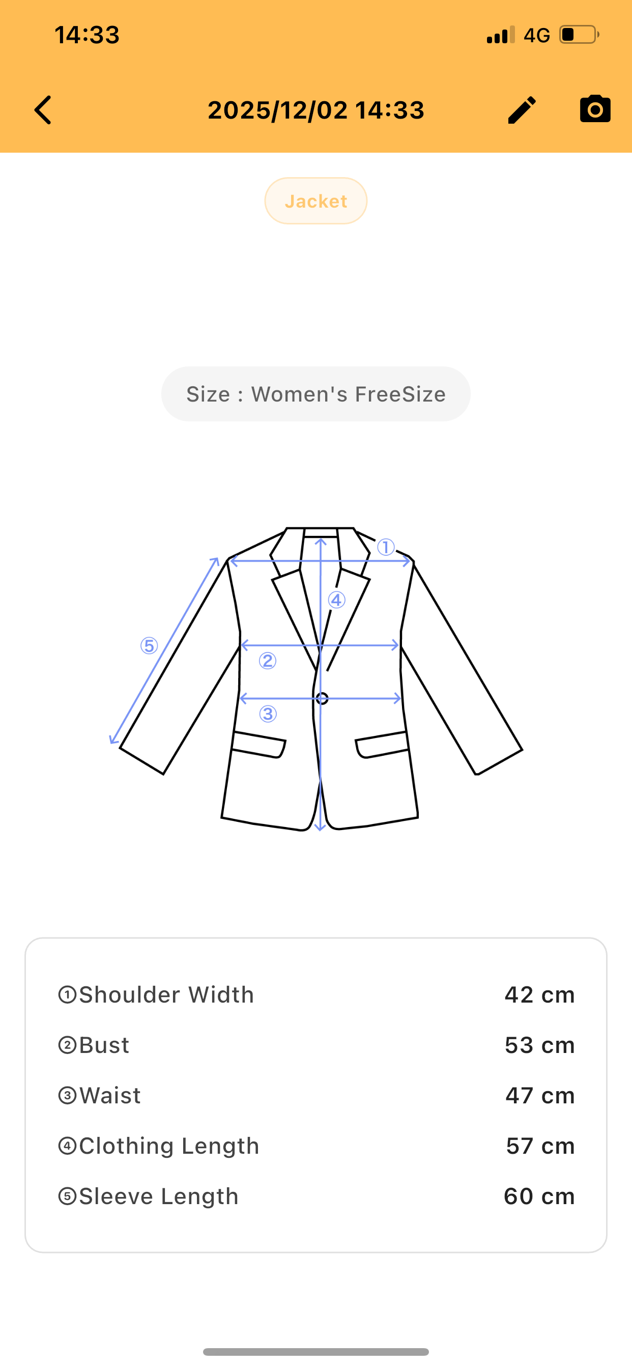 Size: Women’s M Shoulder Width: 42 cm Bust: 62 cm Waist: 47 cm Clothing Length: 57 cm Sleeve Length: 60 cm