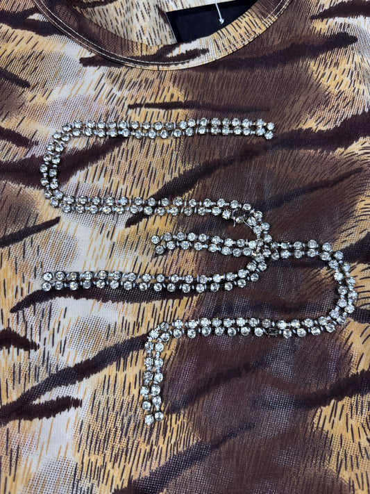 Women's Y2K Tiger Print Sleeveless Top with Beaded Front Detail