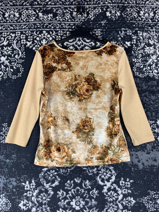 Women's Y2K Vintage Beige Velvet Longsleeve Top