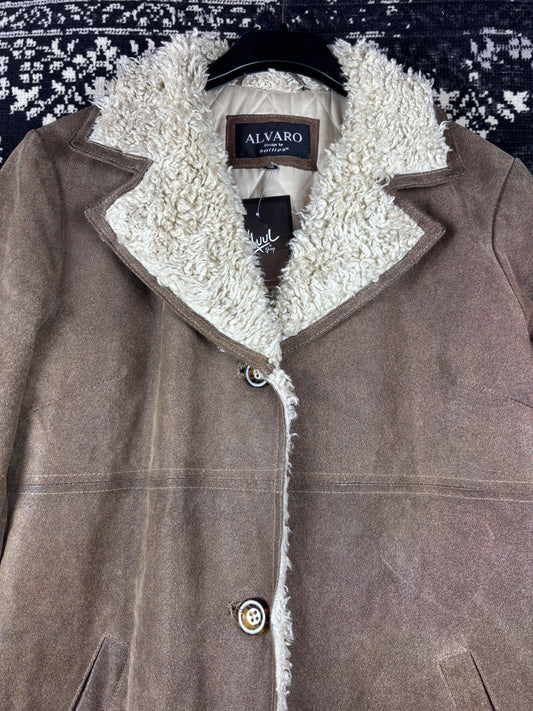 Women's Y2K Vintage Brown Faux Suede Long Coat with Soft Faux Fur Trim