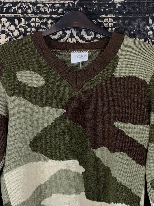 Y2K Camouflage Knit V-Neck Sweater Women’s Long Sleeve
