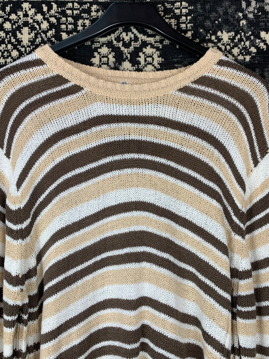 Y2K Style Unisex Brown and Beige Striped Knit Sweater