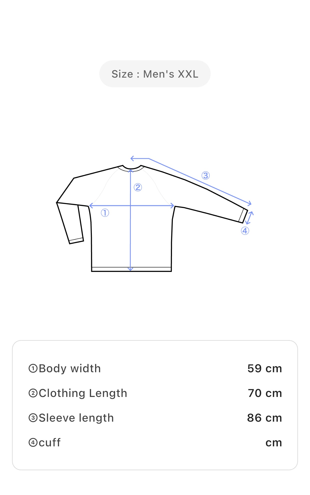 Size: Men’s XXL (Body Width: 59 cm, Clothing Length: 70 cm, Sleeve Length: 86 cm)