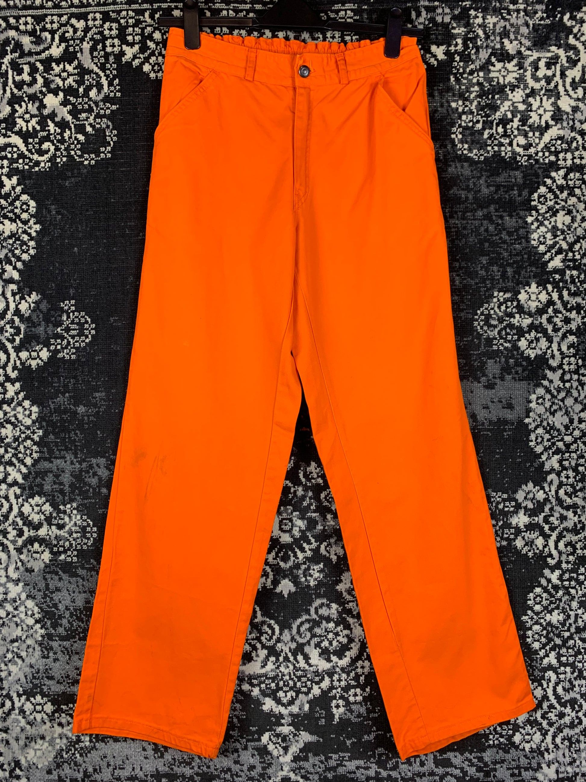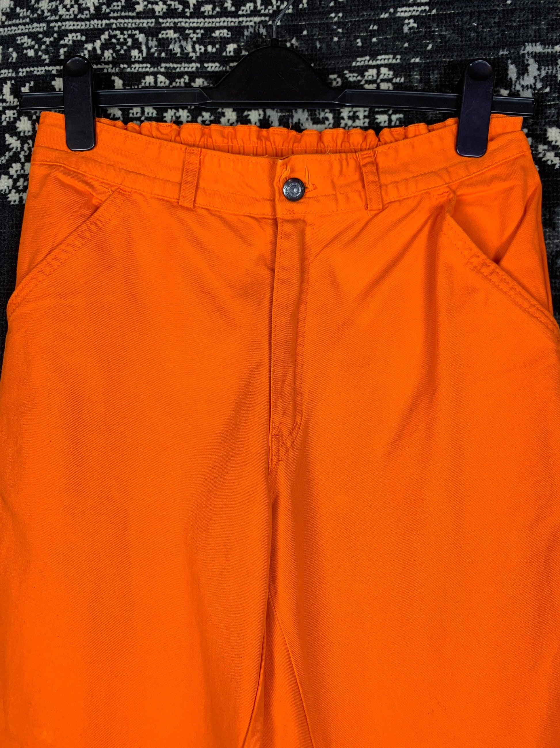 Mens Vintage Orange Workwear Pants - Haved Men XS Size Utility Trousers with Pockets Funky Streetwear High Visibility Retro Style