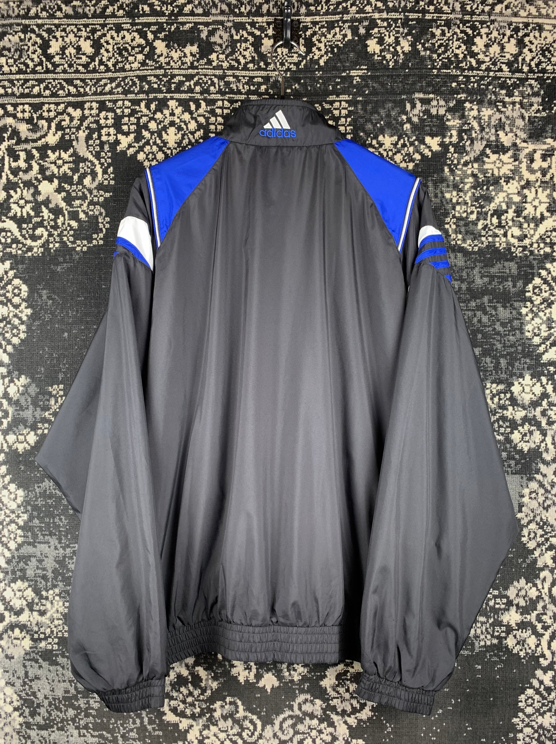 Men’s Vintage Adidas Track Jacket – Blue & Black Full Zip Windbreaker with Logo Stripes