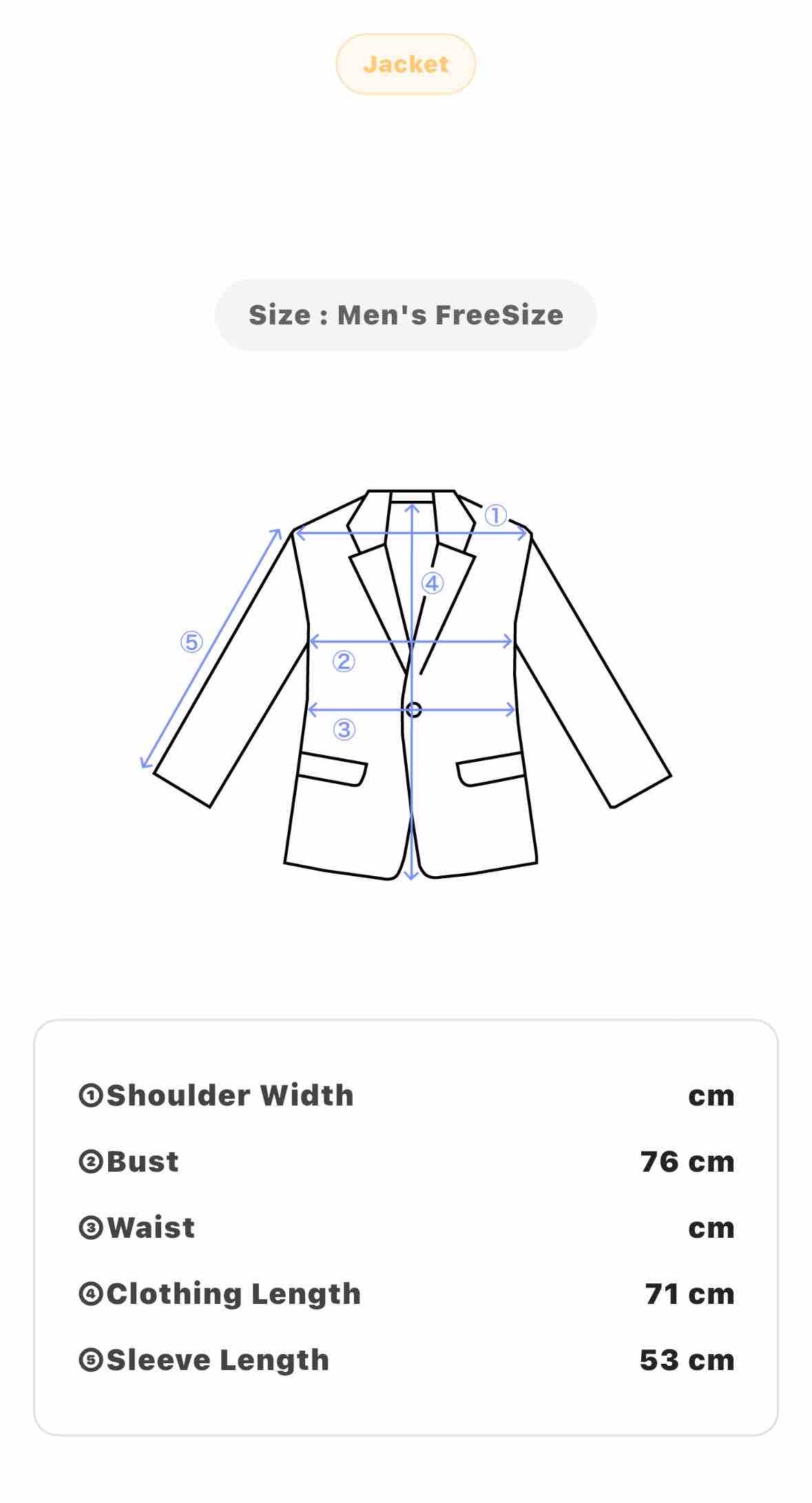 Size: Men's S Bust: 76 cm, Clothing Length: 71 cm, Sleeve Length: 53 cm