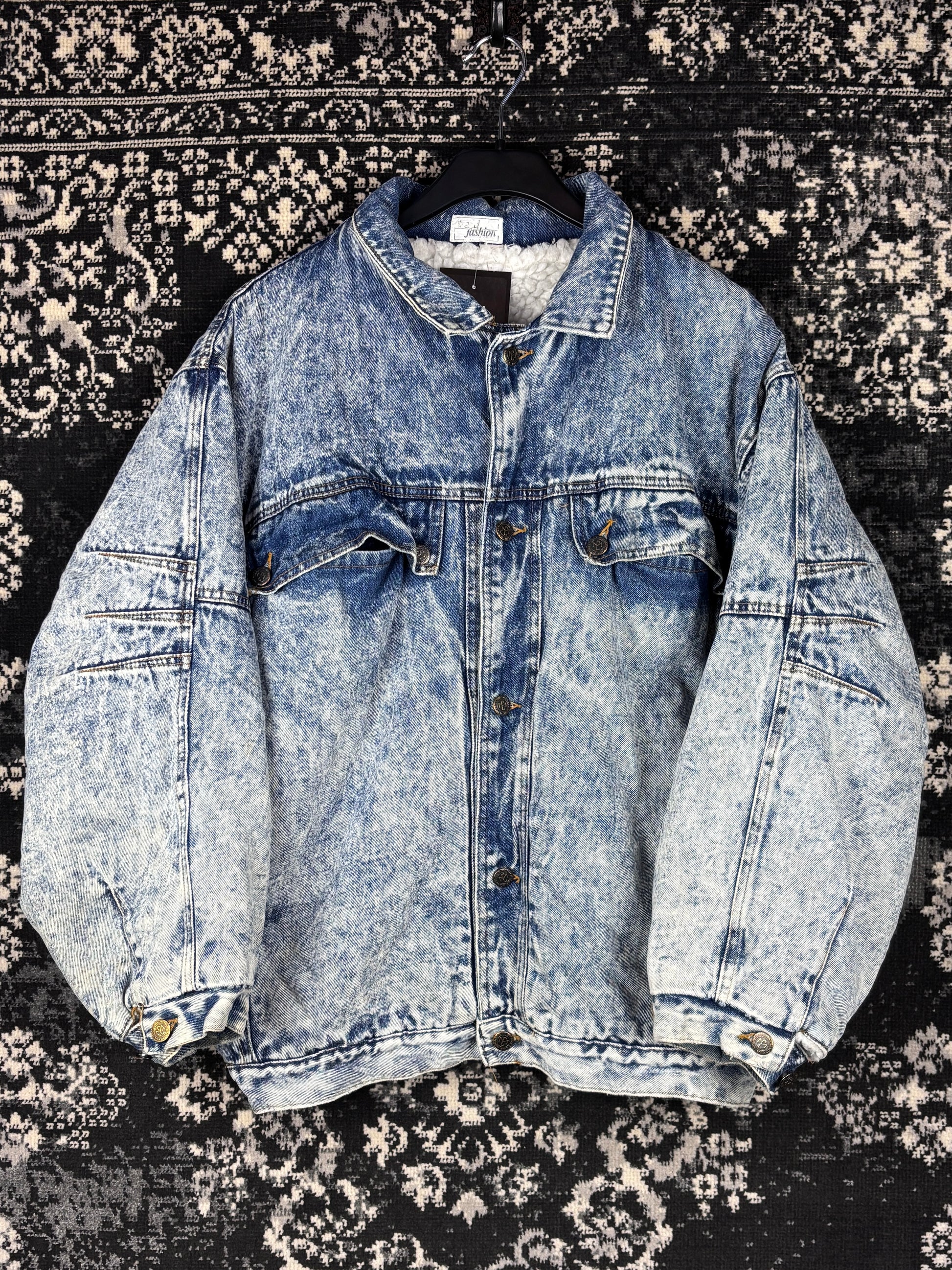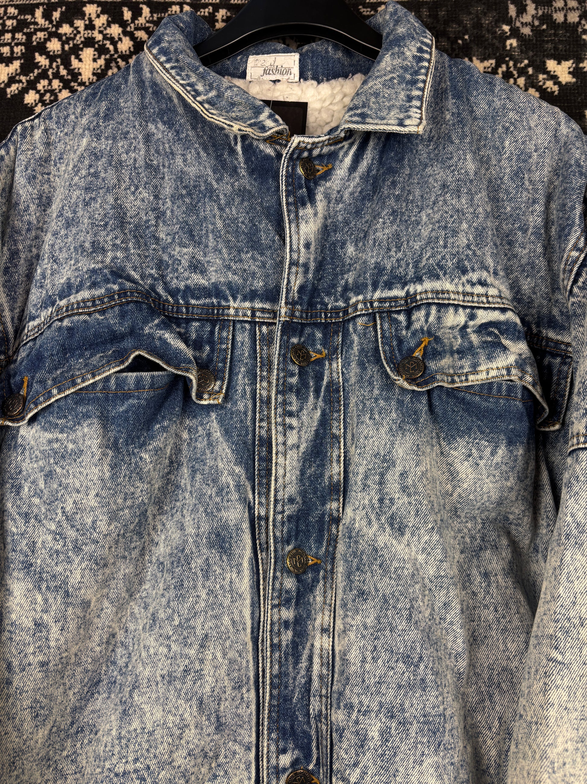 Men's Vintage Acid Wash Blue Denim Jacket with Warm Fleece Inner Lining and Button Front – Oversized Fit – 90s Street Style – Men's S