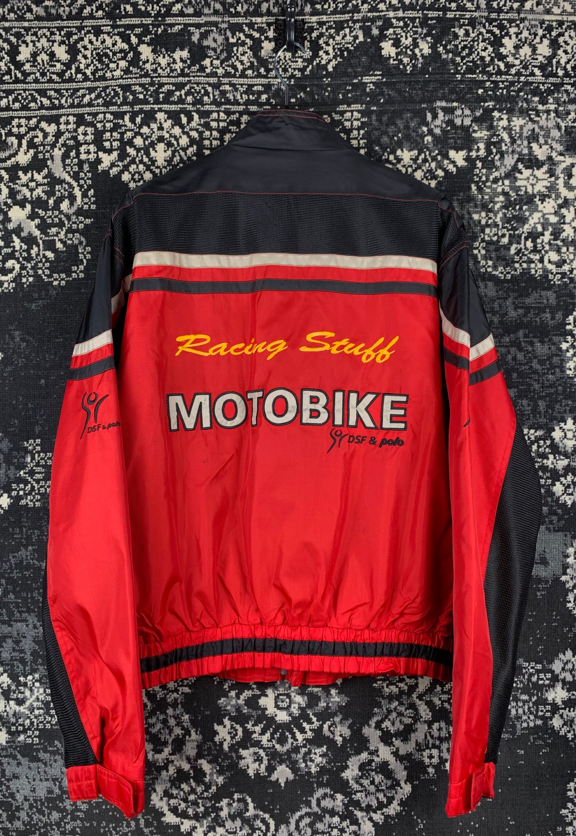 Men's Vintage Racing Jacket – "High Speed Racing Stuff" Moto Style – Red & Black Biker Windbreaker – Spiegler Patch – Size XL
