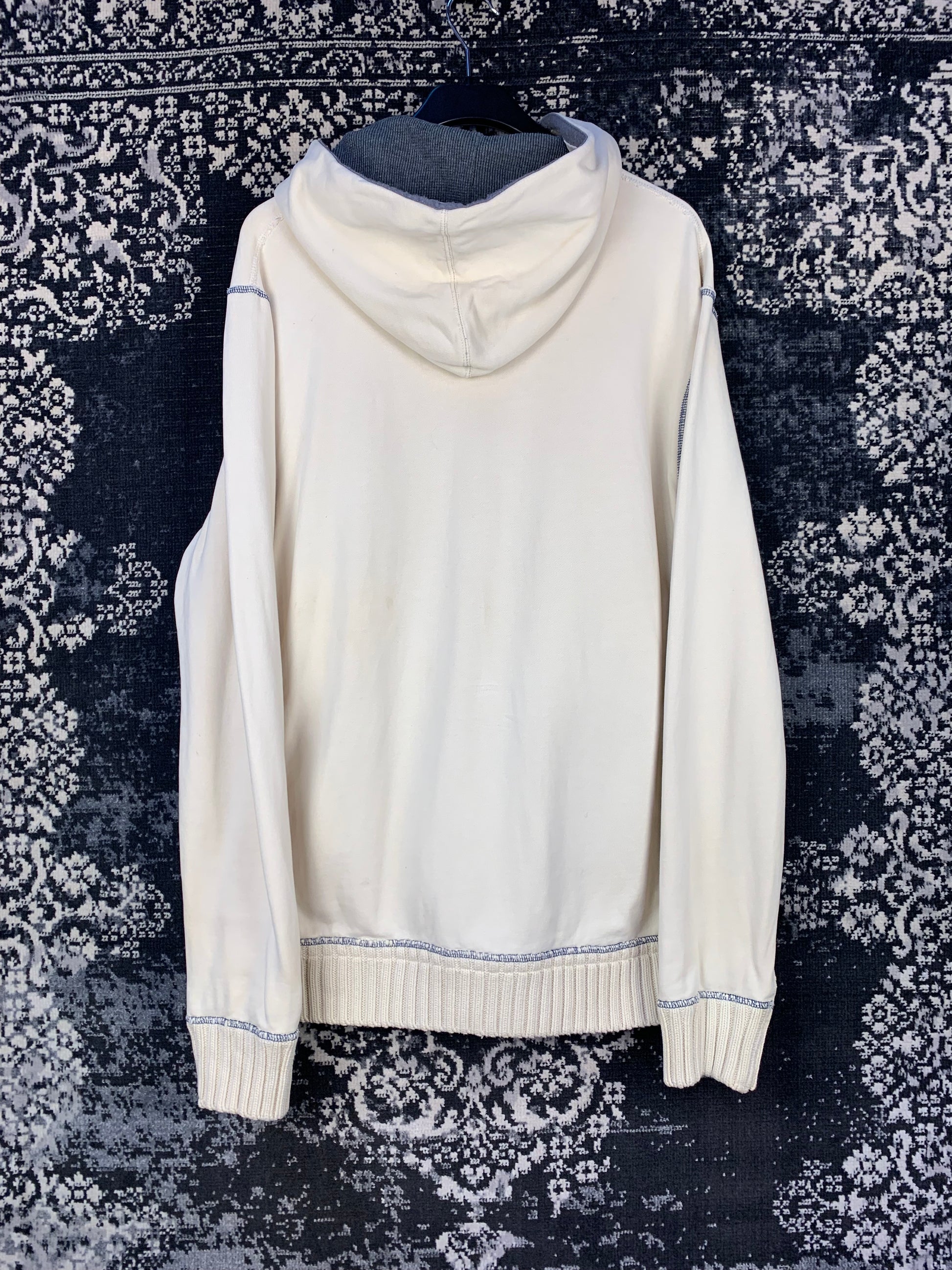 Mens Y2K Style Desigual Graphic Hoodie Jacket XL White Full Zip Streetwear Sketch Art Print Urban Retro Rare Vintage Look