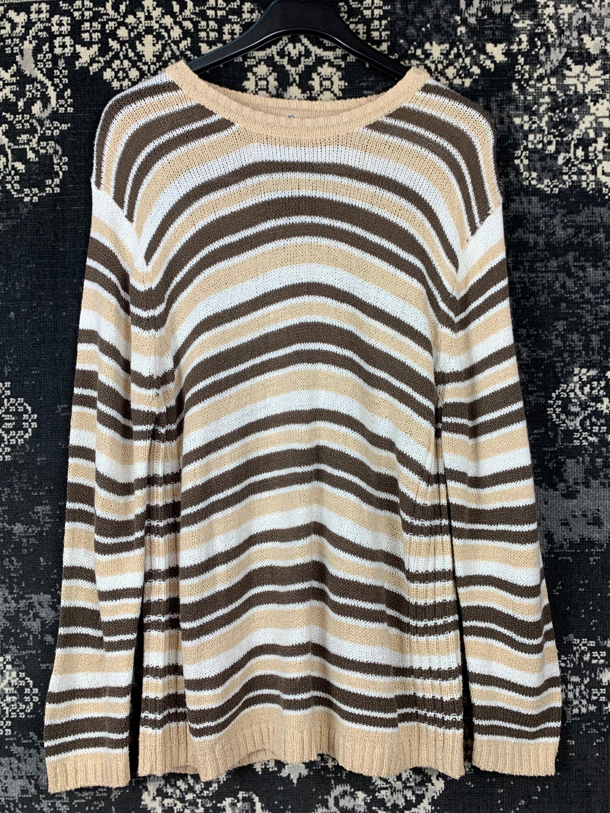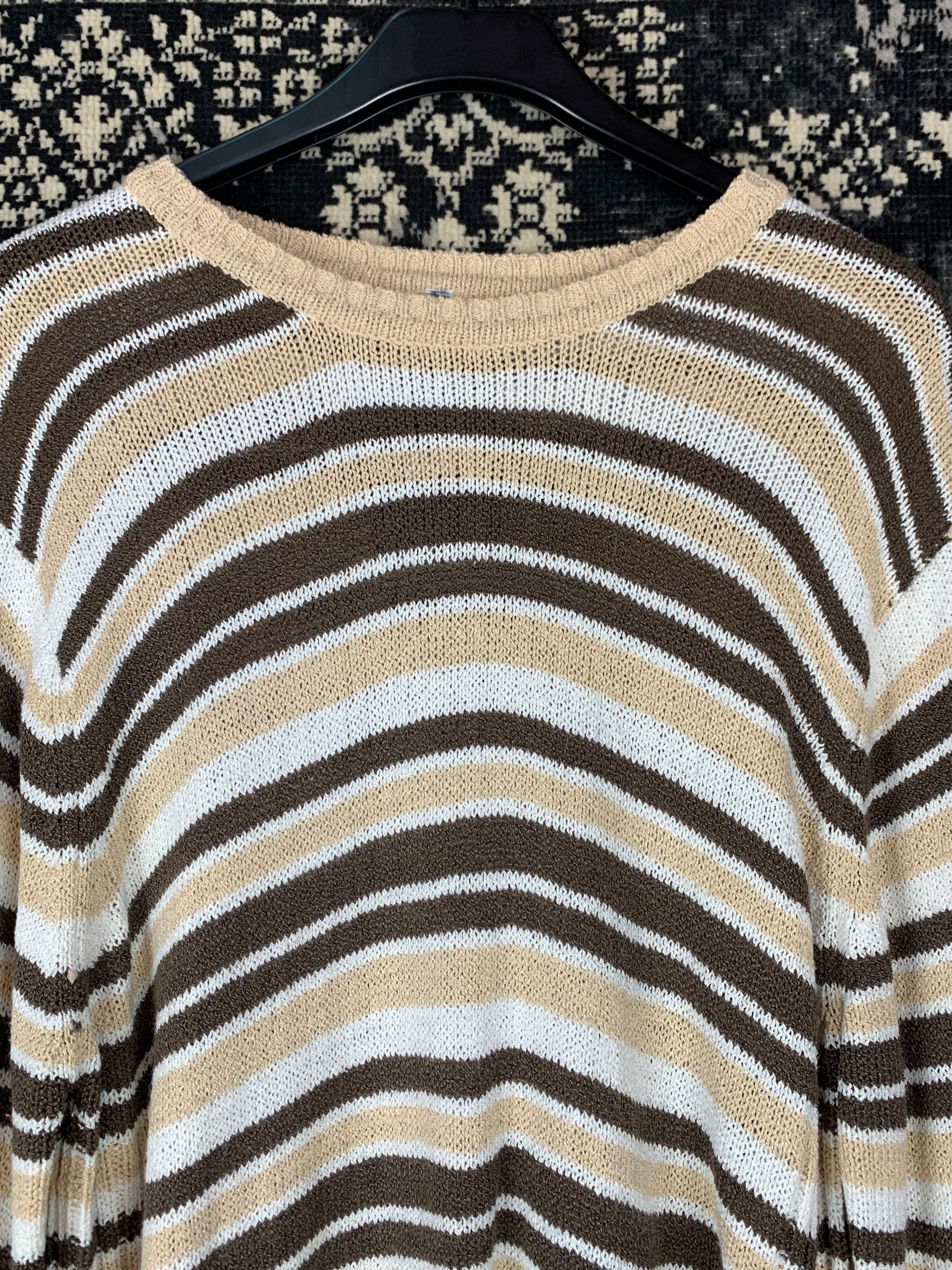 Y2K Style Unisex Brown and Beige Striped Knit Sweater – Long Sleeve Free Size Retro Soft Pullover Cozy Aesthetic Top