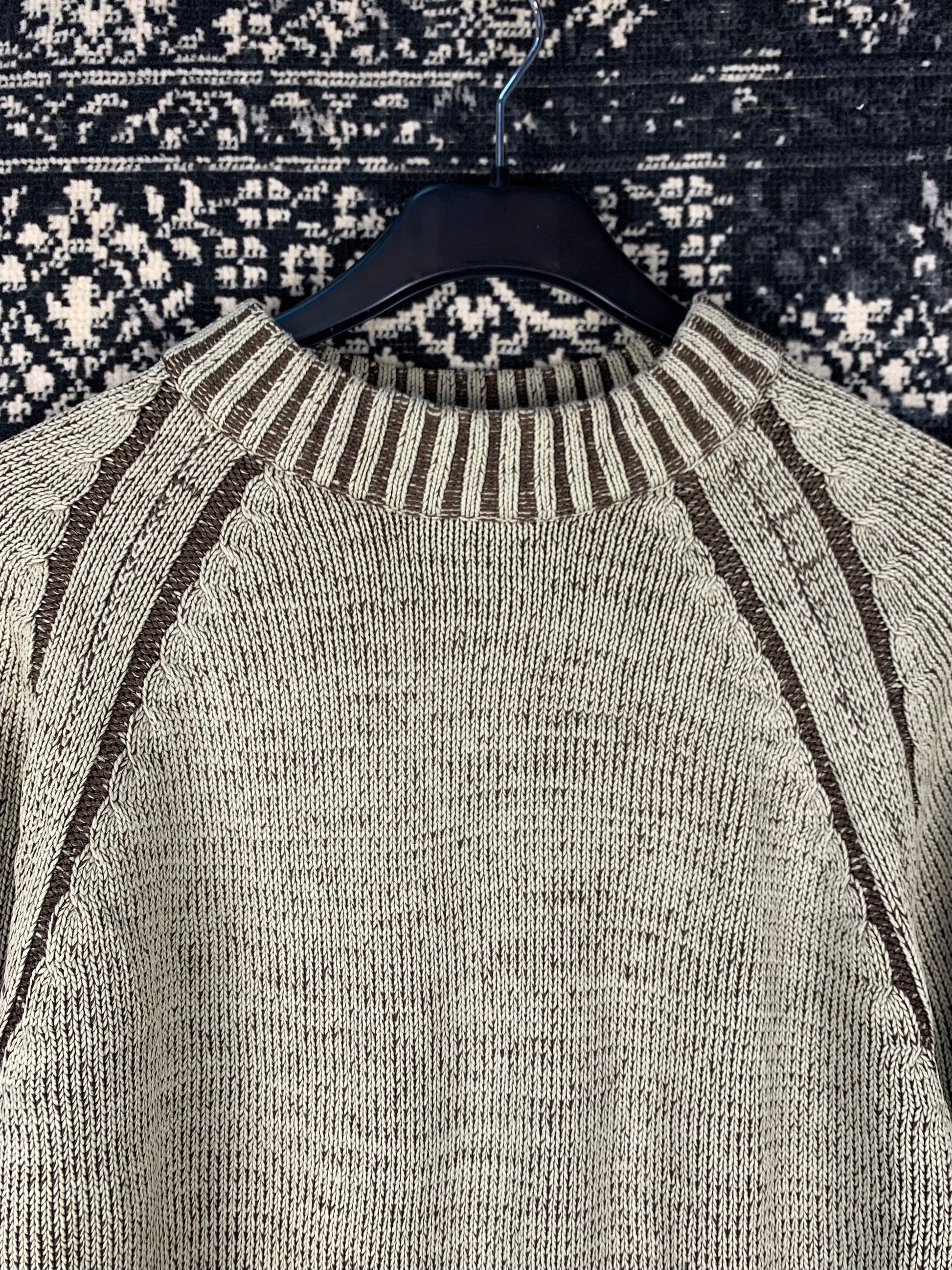 Unisex Washed Two-Tone Chunky Knit Sweater – Crew Neck – Ribbed Trim – Cable Detail – Size M – Neutral Aesthetic