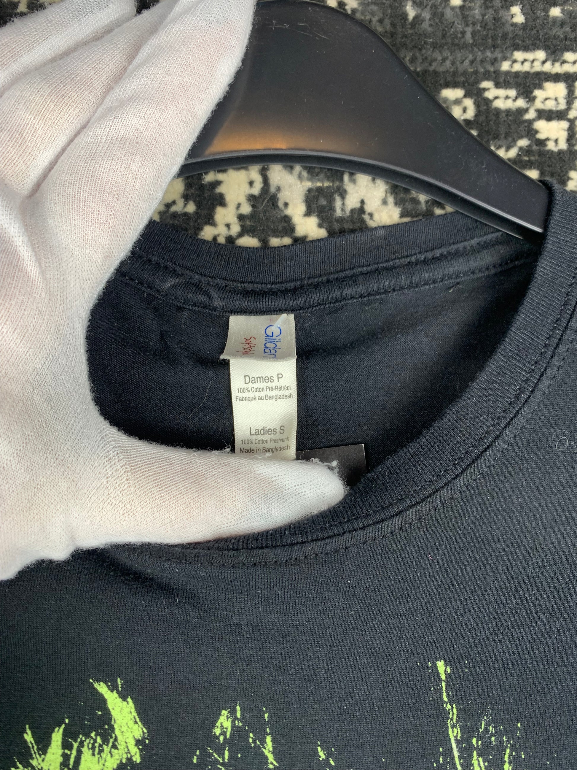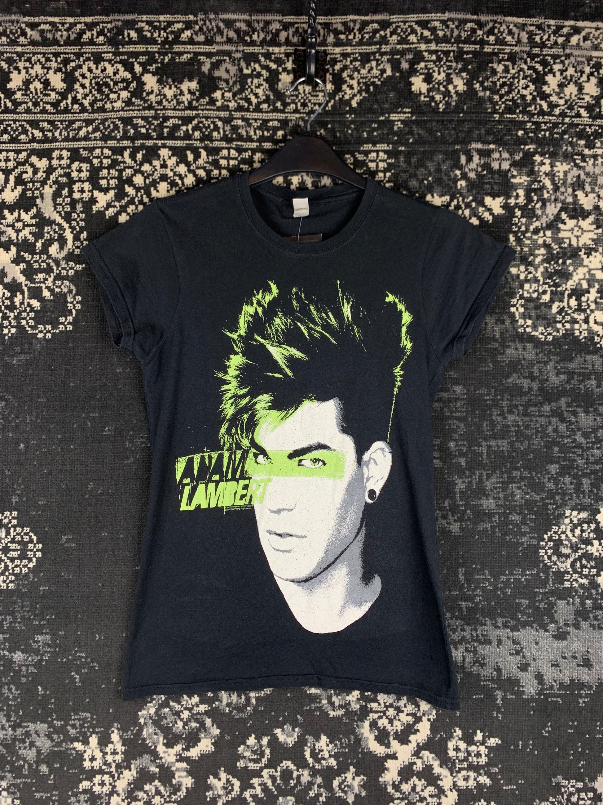 Y2K Women's Black Adam Lambert Graphic Band T-Shirt – Neon Green Print, Size S, Pop Rock Tour Tee