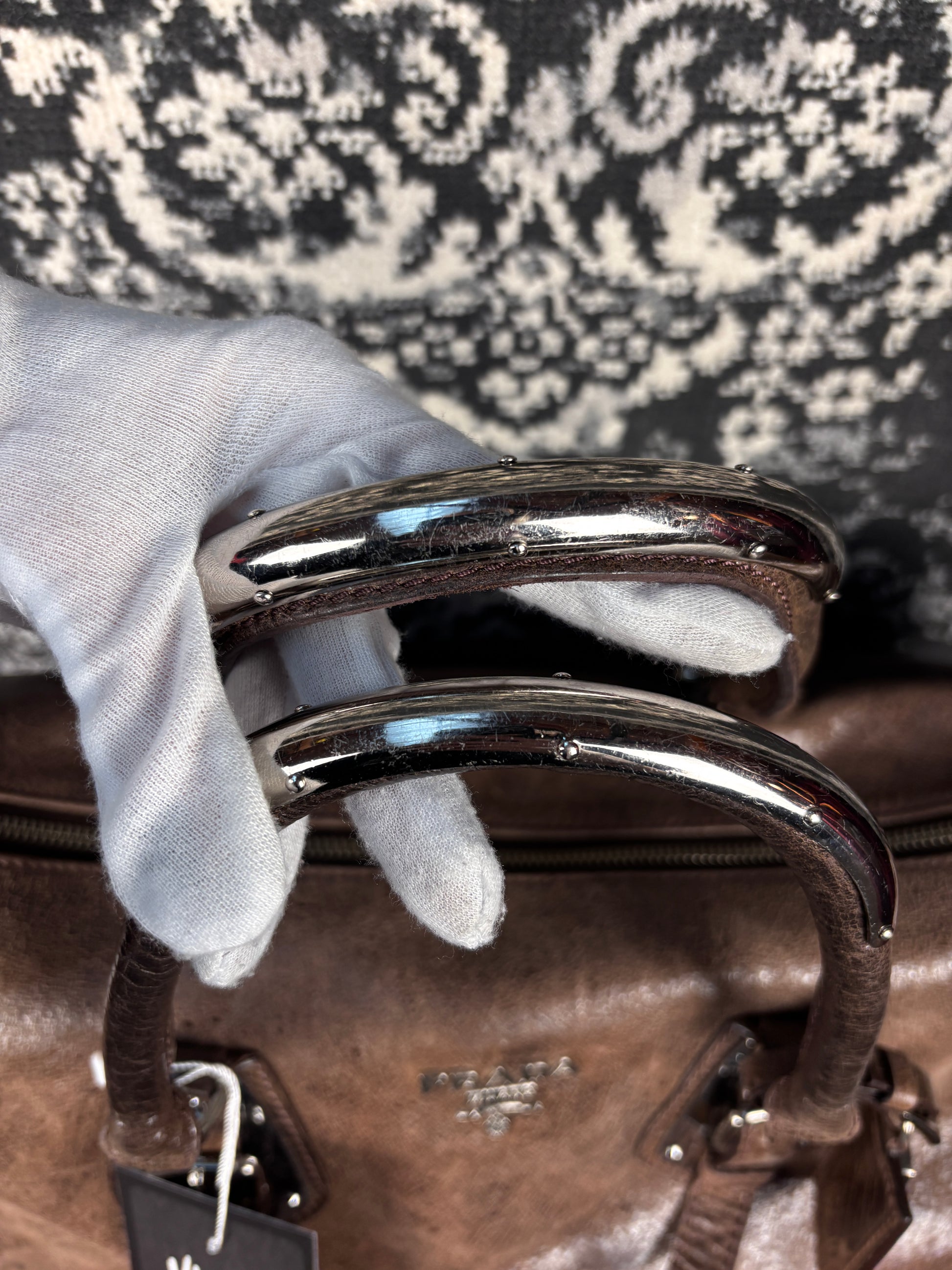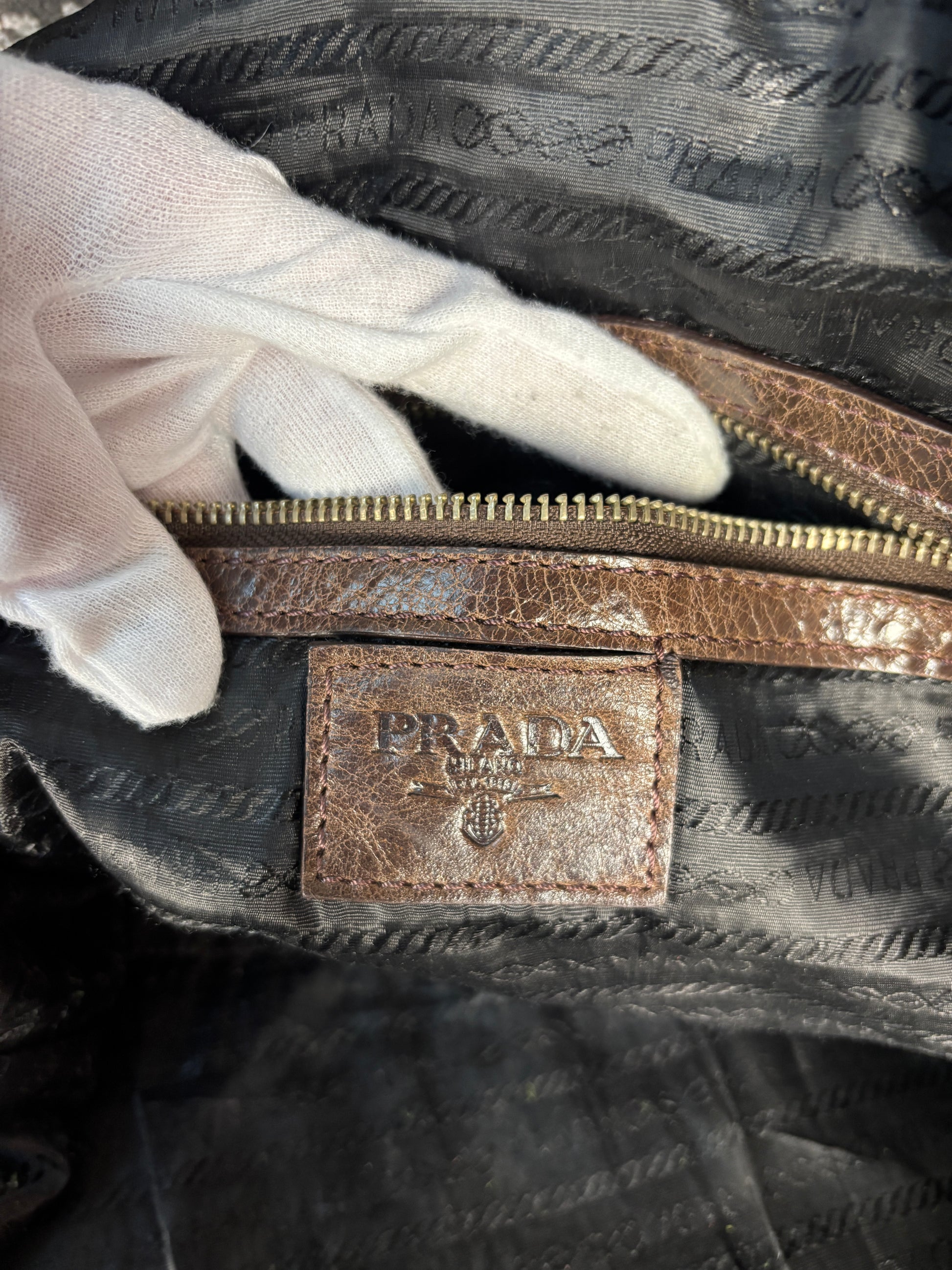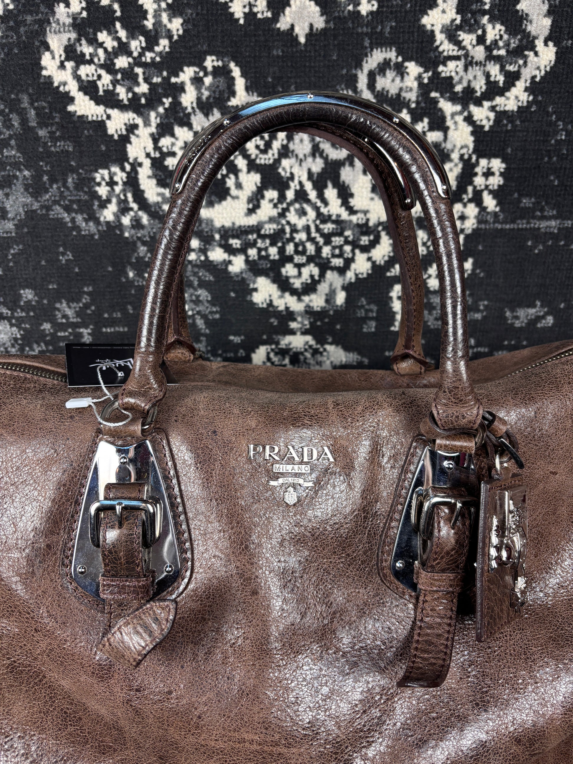 Y2K Vintage Prada Brown Leather Duffle Bag