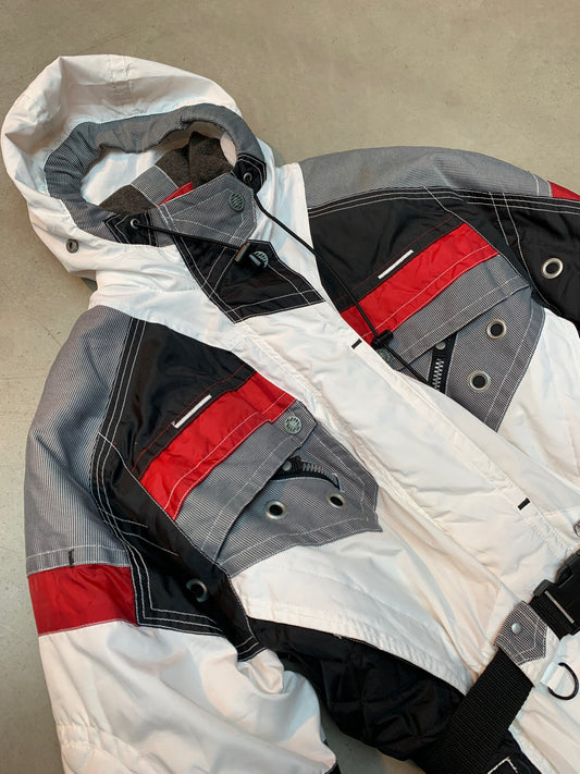 Vintage Unisex Colorblock Ski Jacket in White, Red & Black