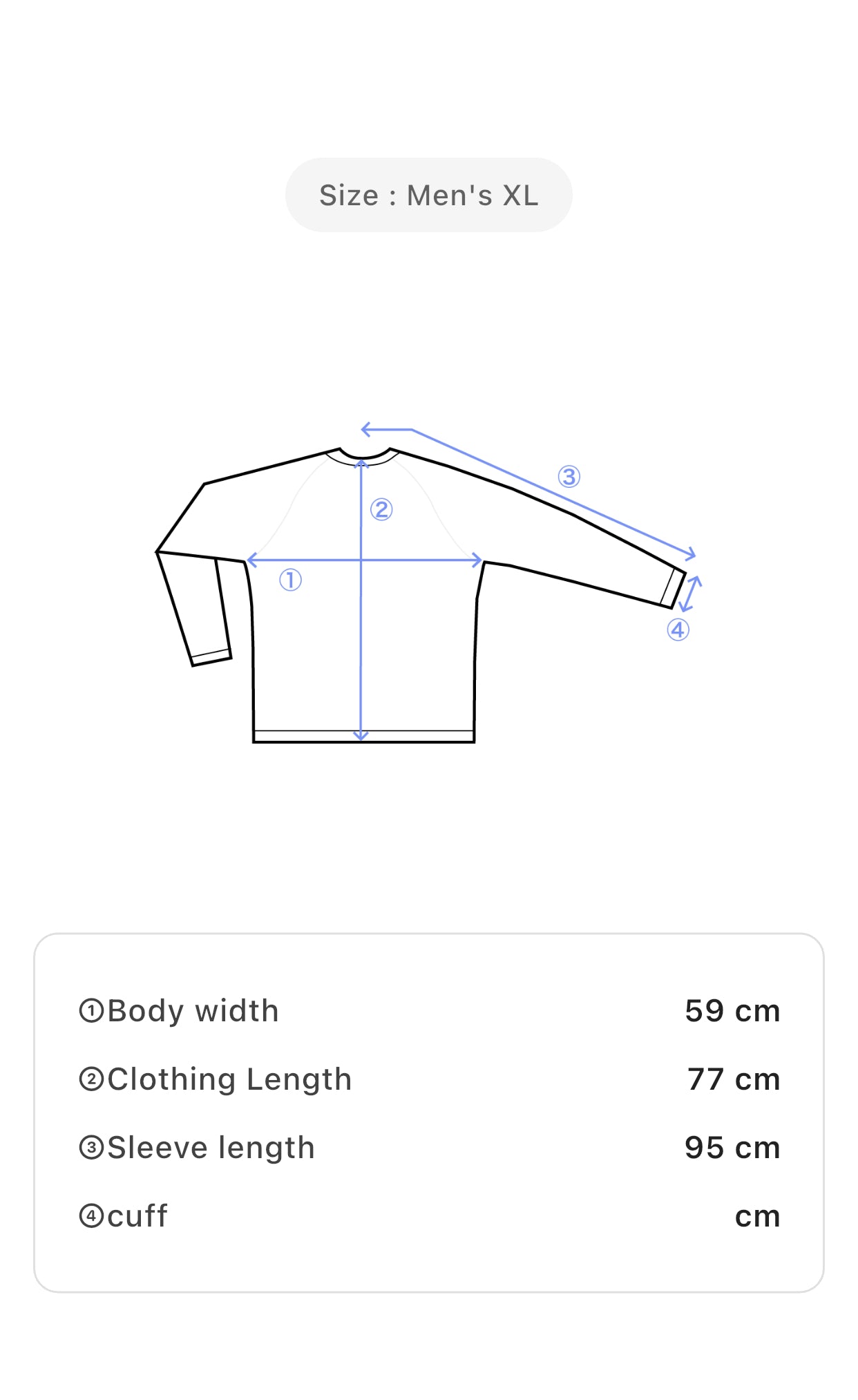Size: Men’s XL (Body Width: 61 cm, Clothing Length: 74 cm, Sleeve Length: 86 cm)