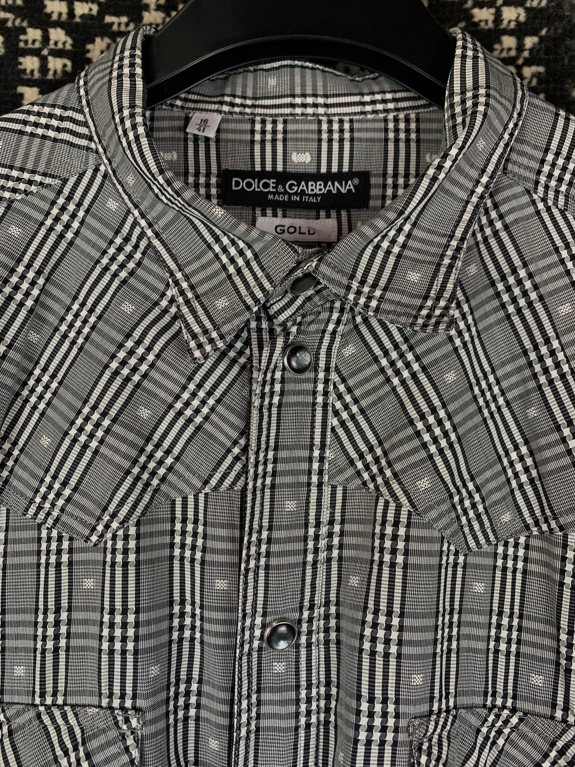 Dolce & Gabbana Black White Plaid Long Sleeve Western Shirt with Snap Buttons and Chest Pockets – Made in Italy – Men's L