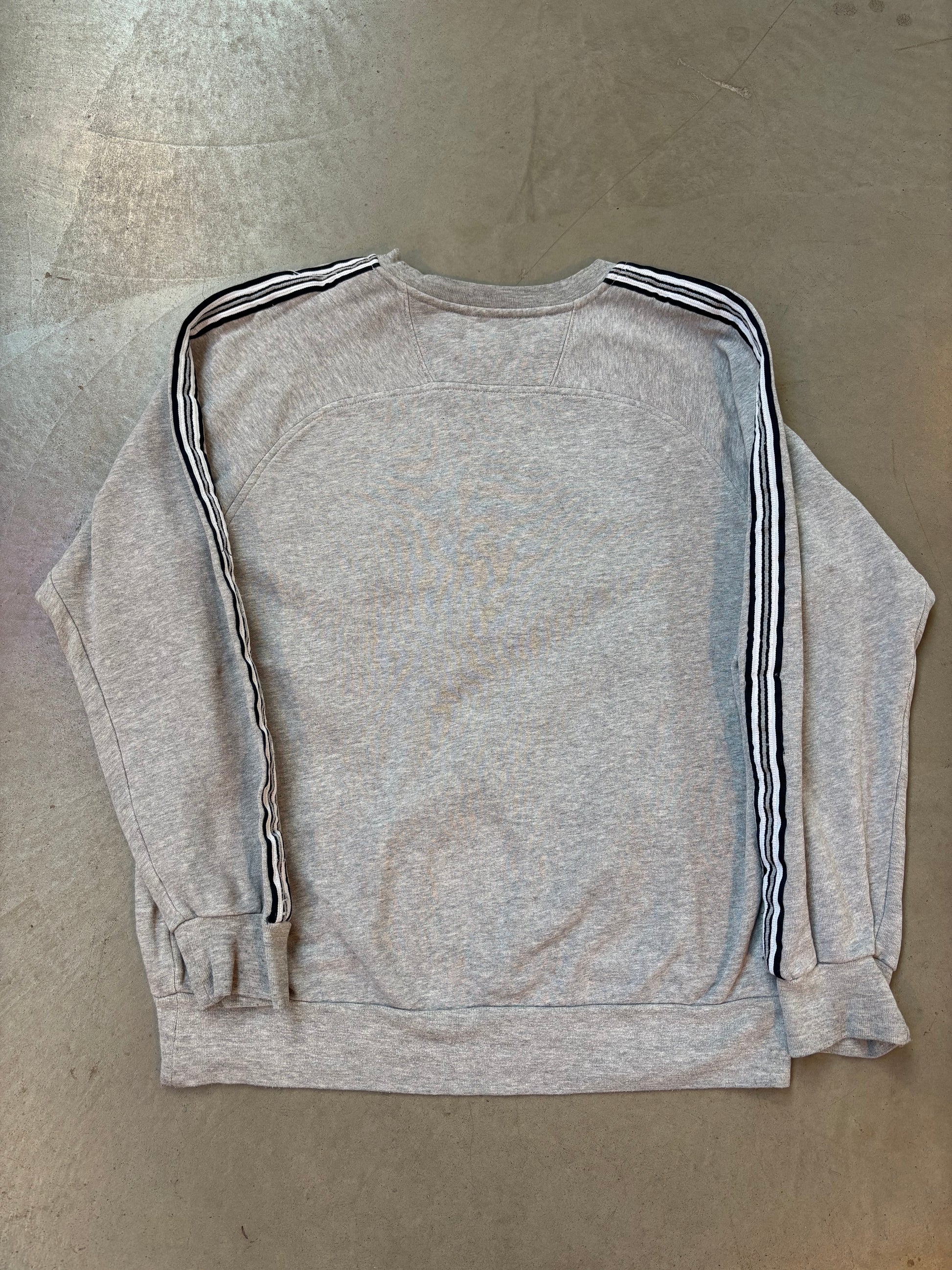 Champion Gray Crewneck Sweatshirt, Striped Sleeve Detail, Men’s Large, Vintage Athletic Streetwear Pullover