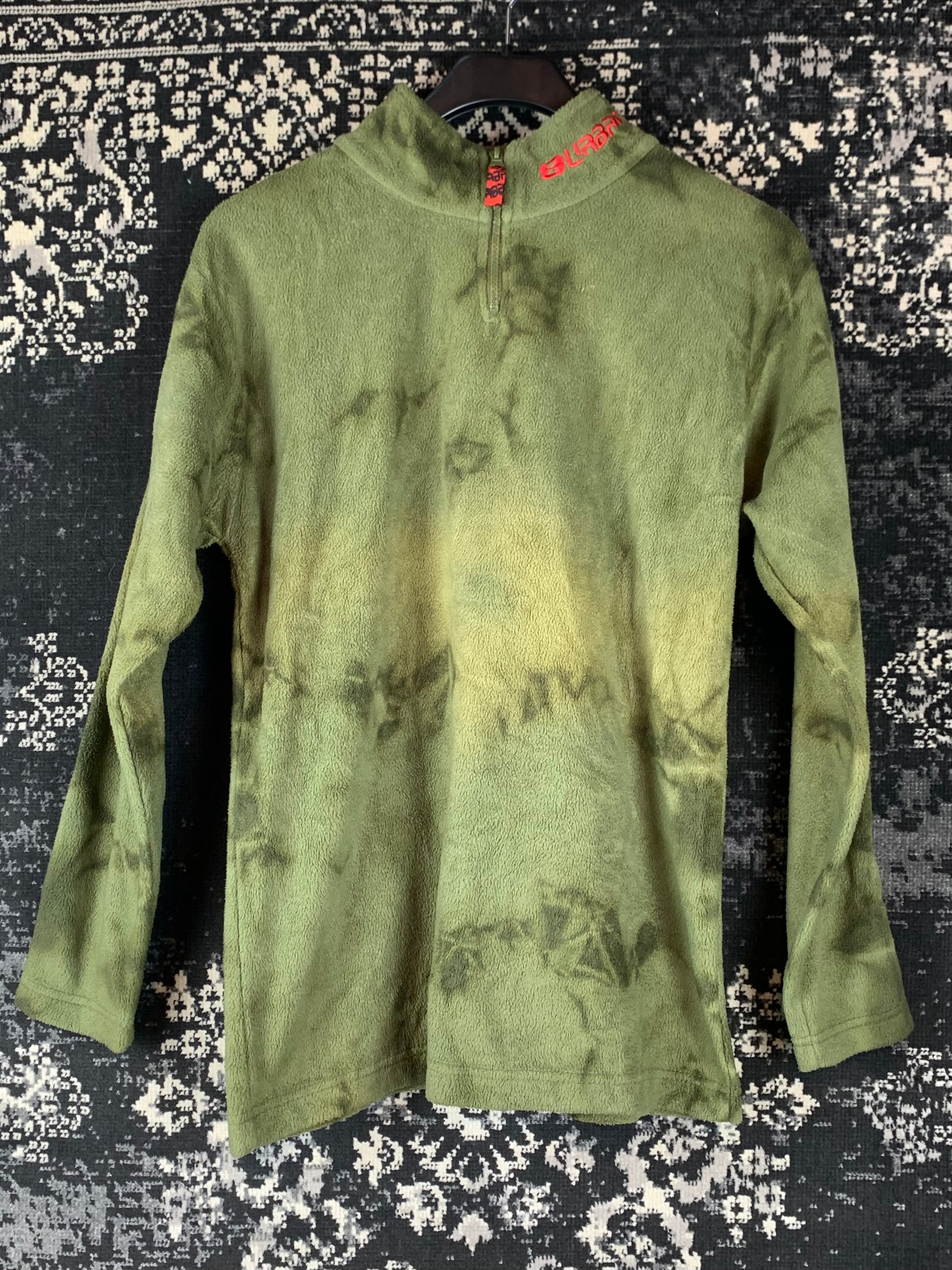 Men's Vintage Green Tie-Dye Fleece Pullover with 8LRBRI Zip Neck and Logo Embroidery