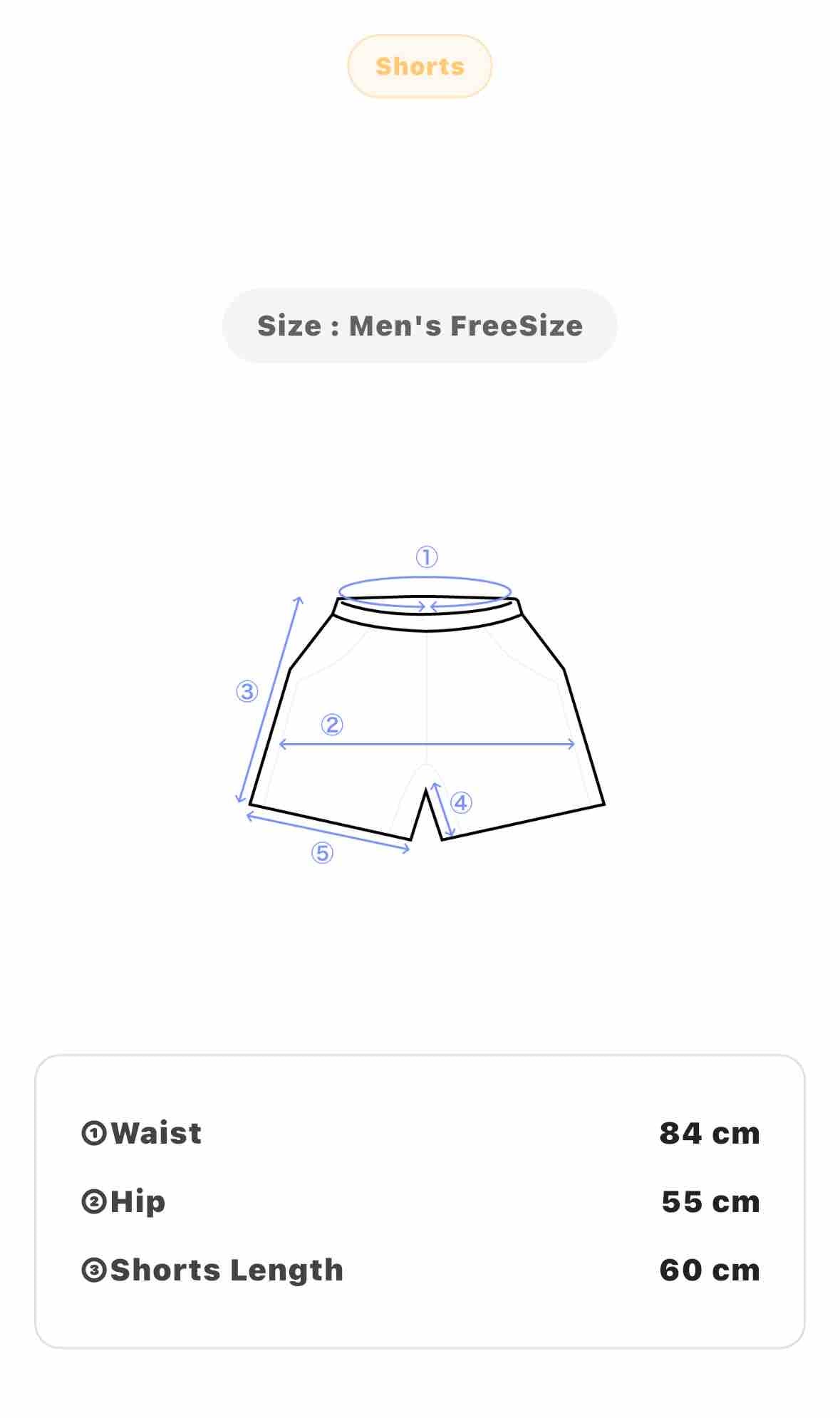 Size: Men's L - Waist: 84 cm, Hip: 55 cm, Shorts Length: 60 cm