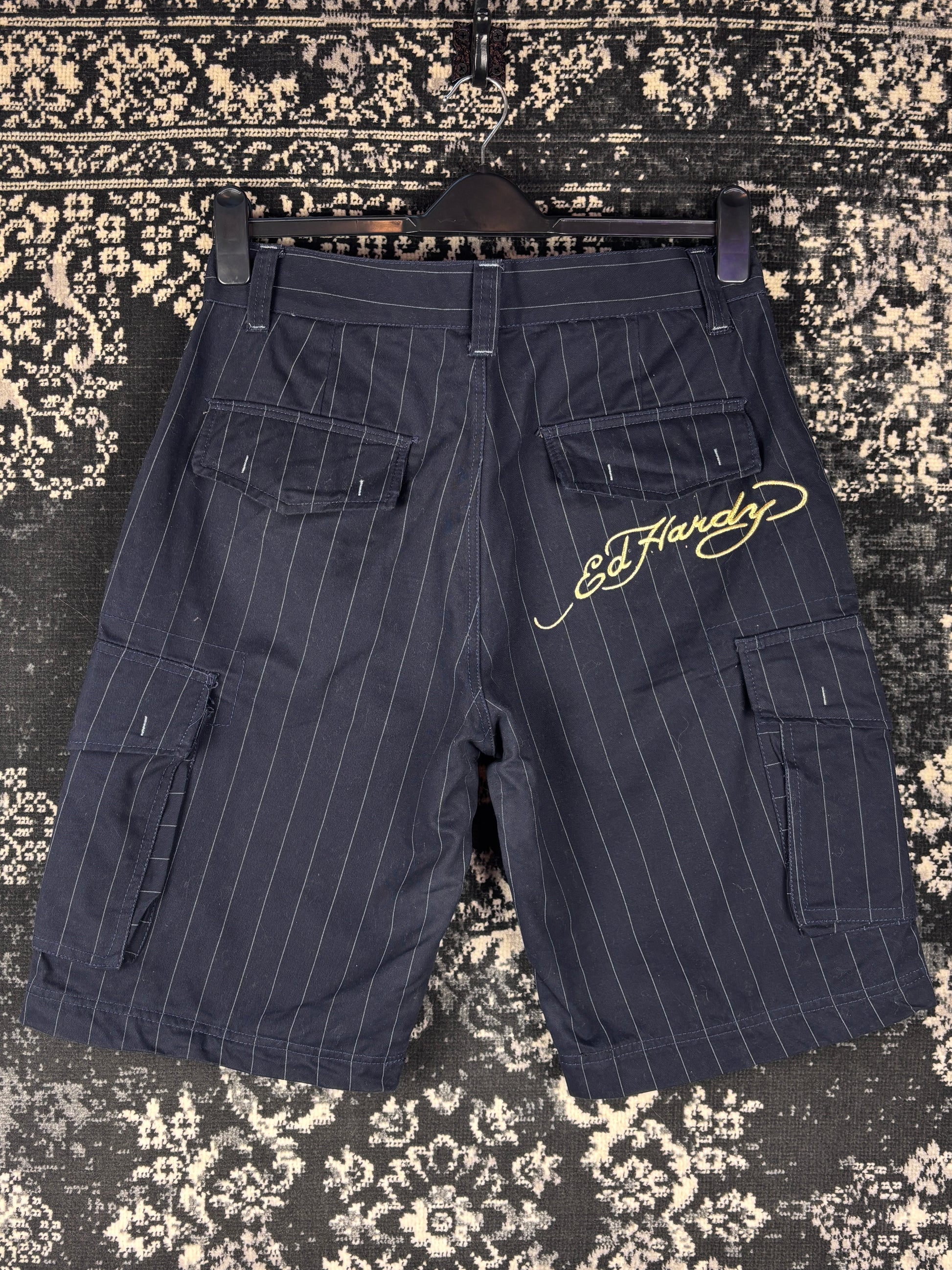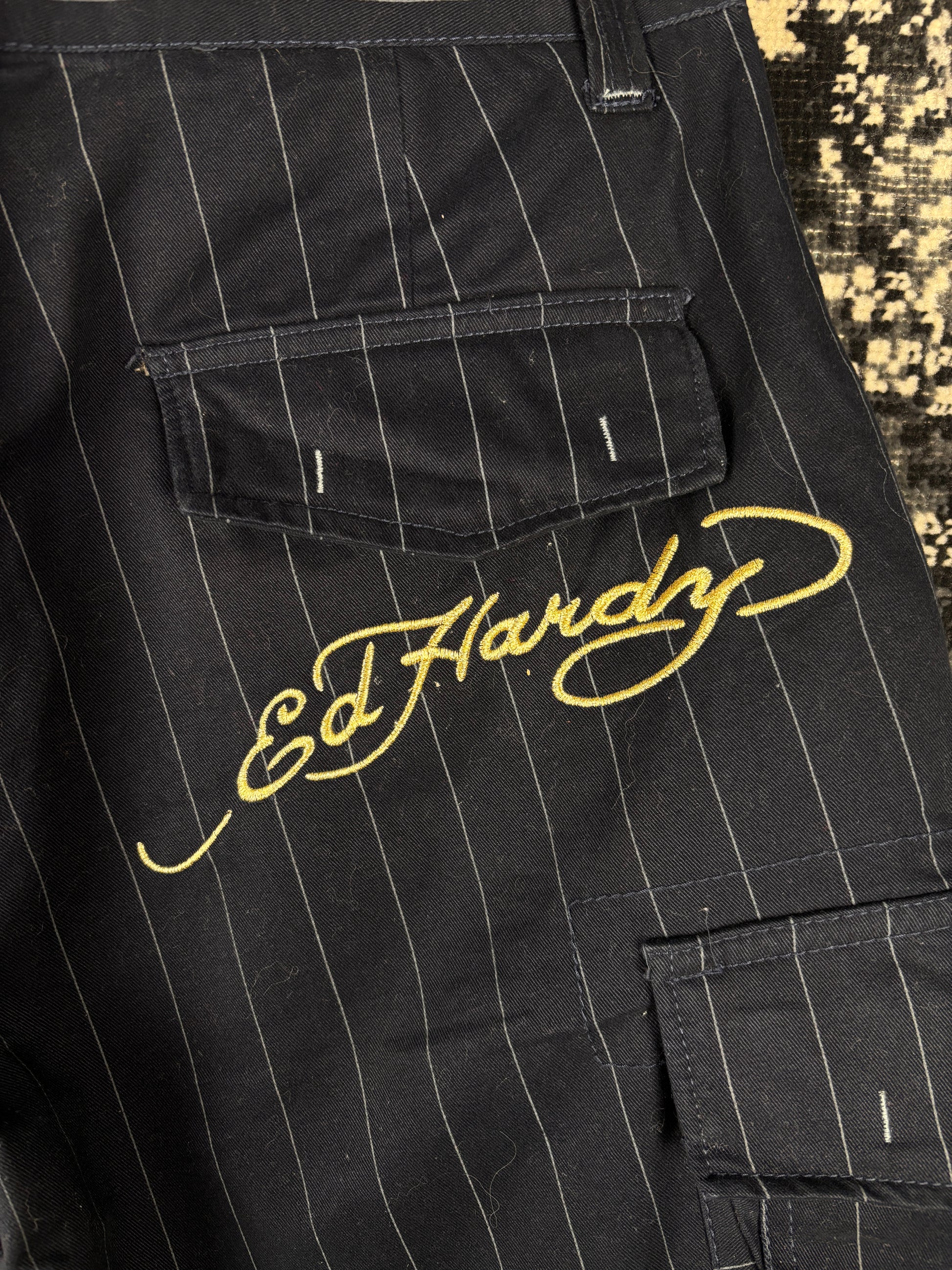 Men's Y2K Black Pinstripe Ed Hardy Cargo Shorts