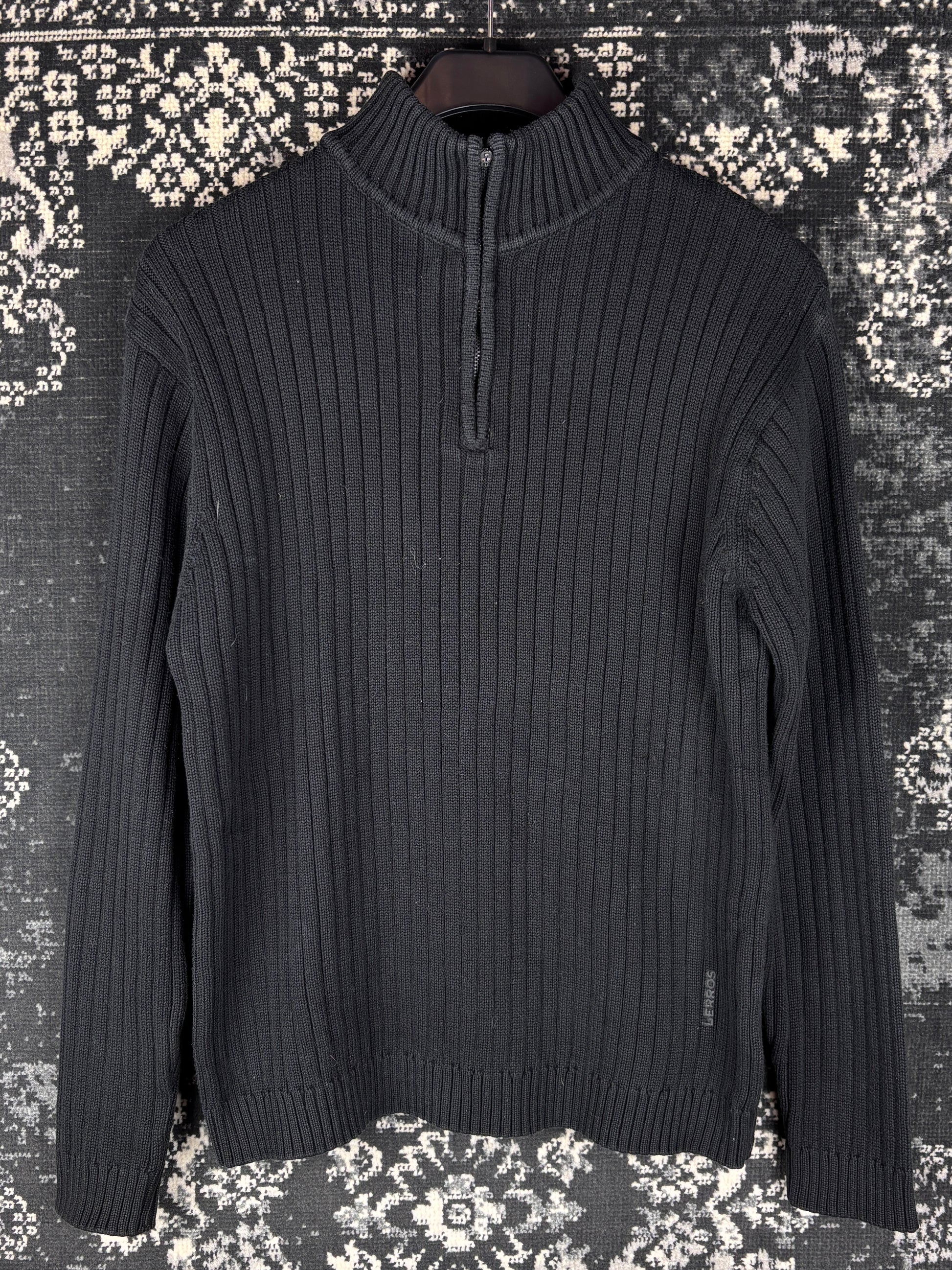 Men's Y2K Black Ribbed Half Zip Sweater - Lerros Pullover Knitwear Retro Minimal Style