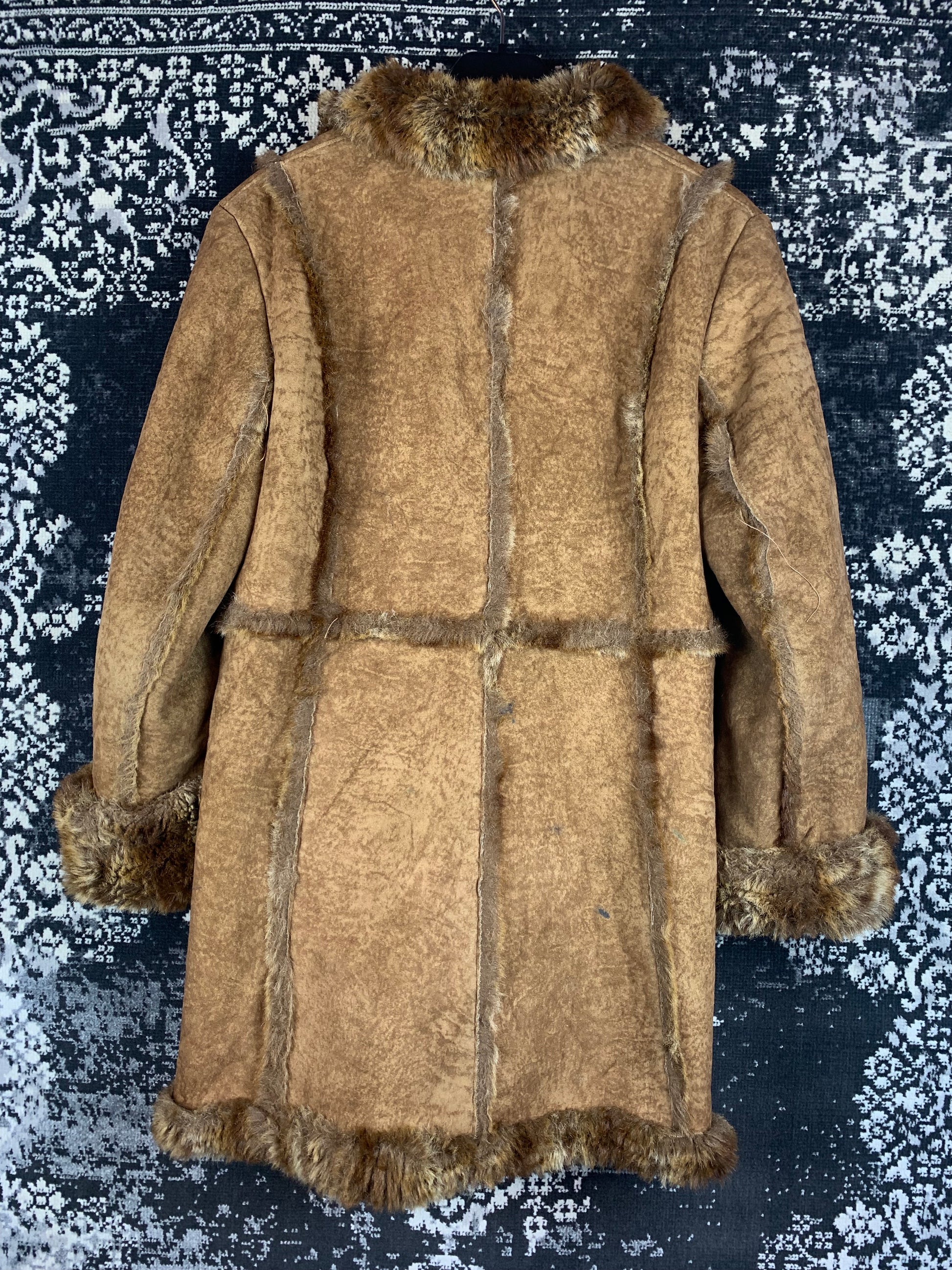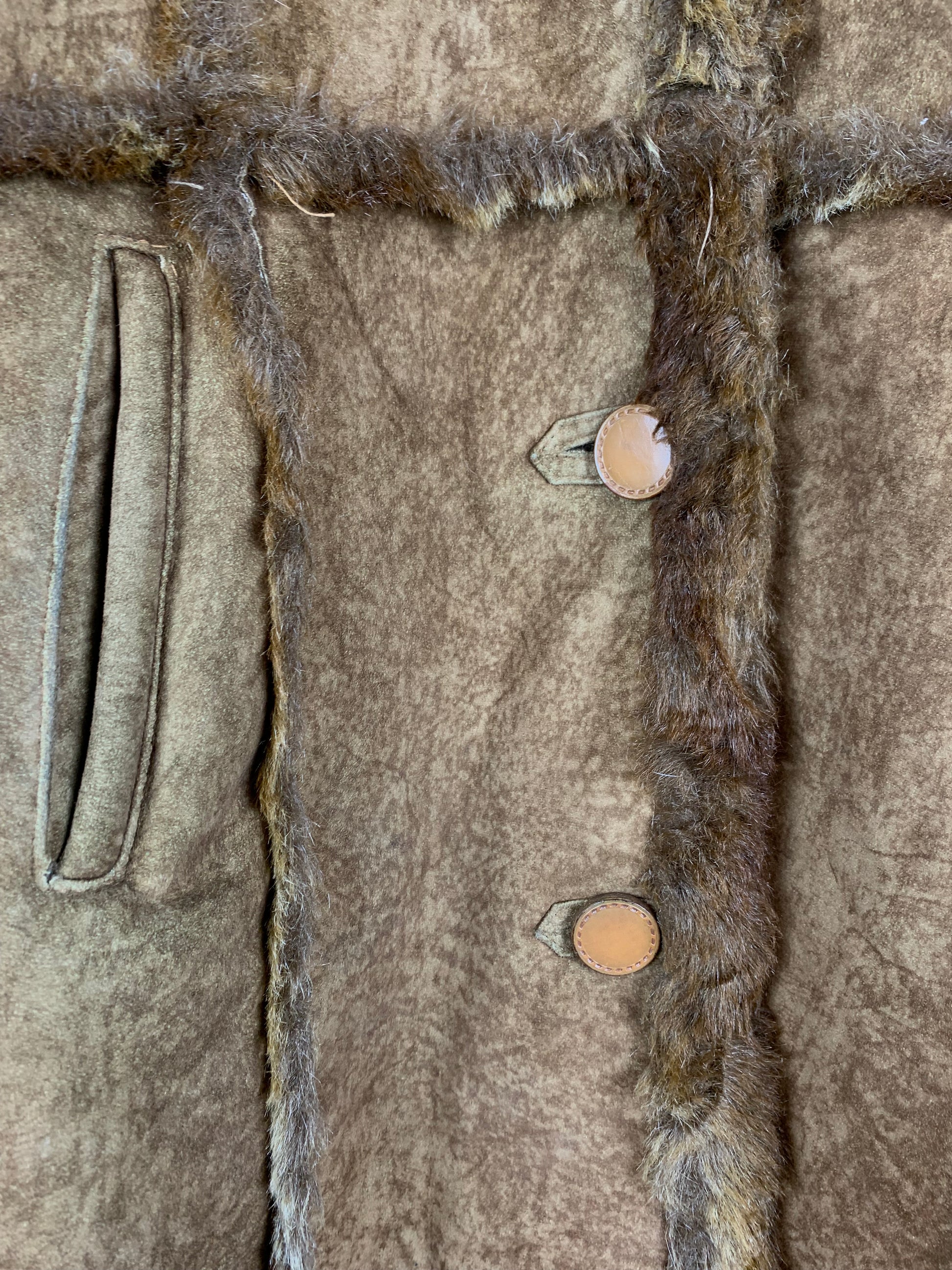 Women's Vintage Faux Fur Lined Winter Coat in Camel Brown with Button Front, Plush Cuffs & Collar – Warm Outerwear