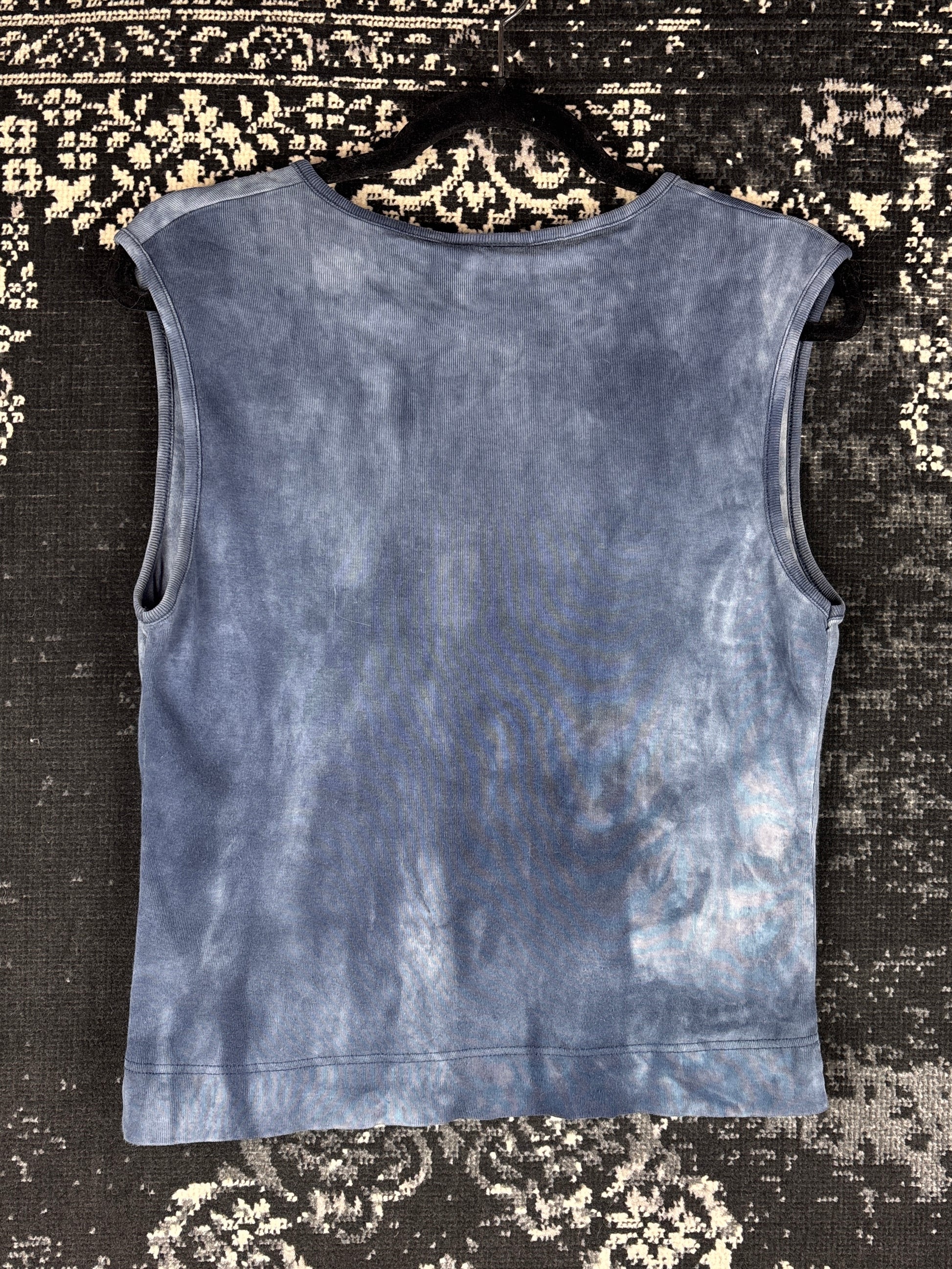 Women's Greyish Blue Asics Sleeveless Tie-Dye Style V-Neck Top – Y2K Sporty Tank