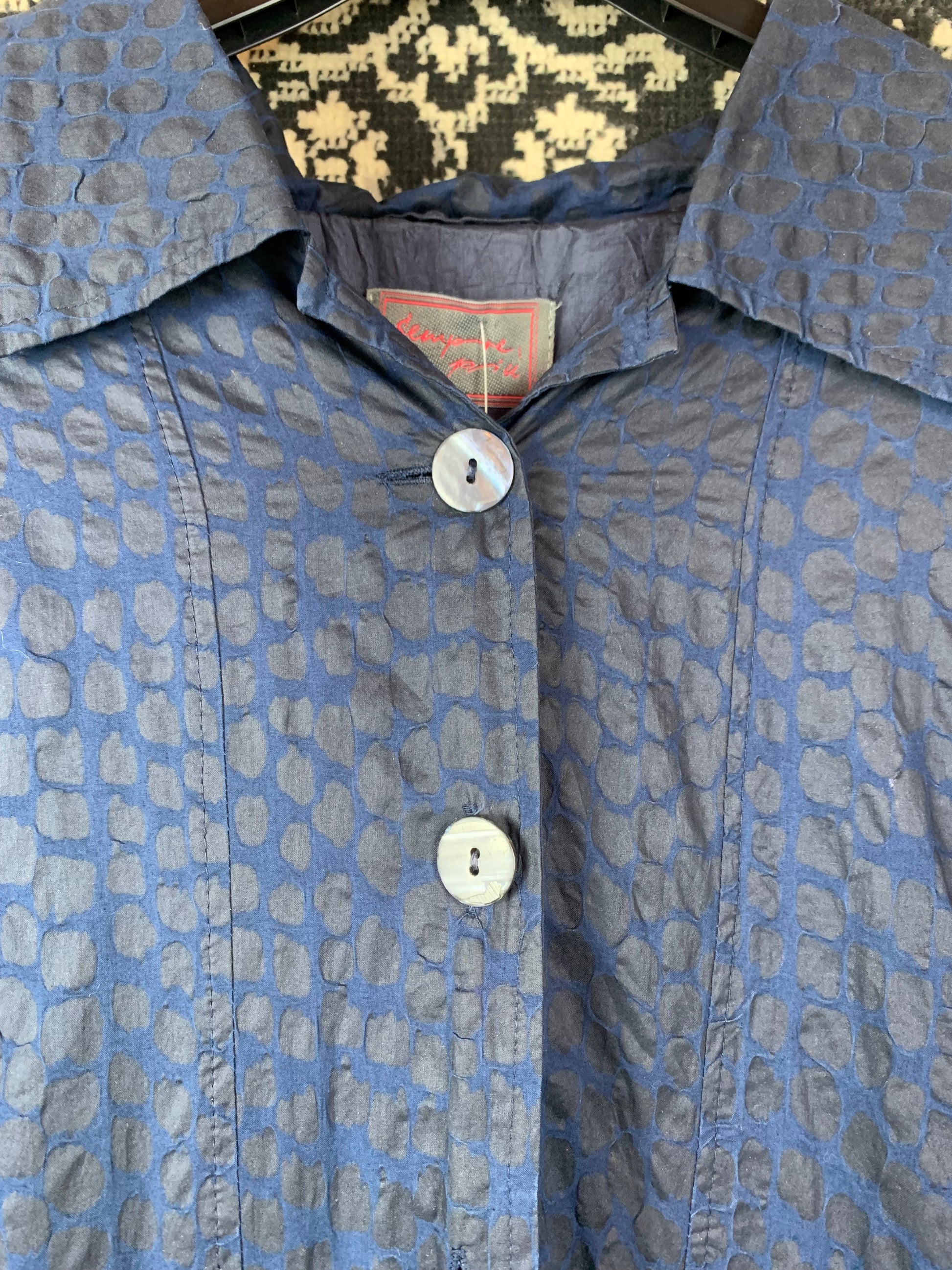 Women's Vintage Textured Blue Button-Up Coat with Oversized Front Pockets – Subtle Animal Print Design – Lightweight Outerwear – XXL