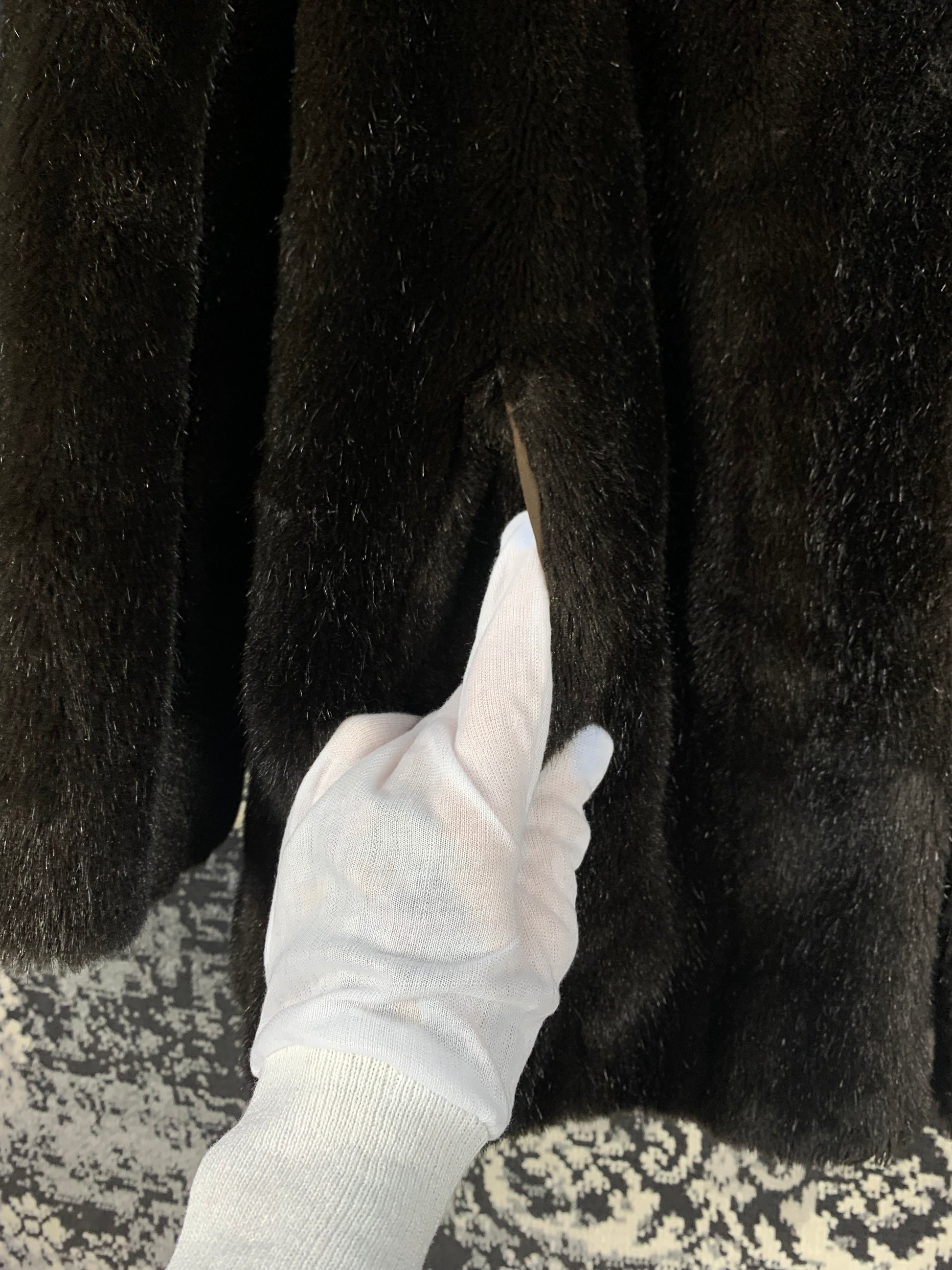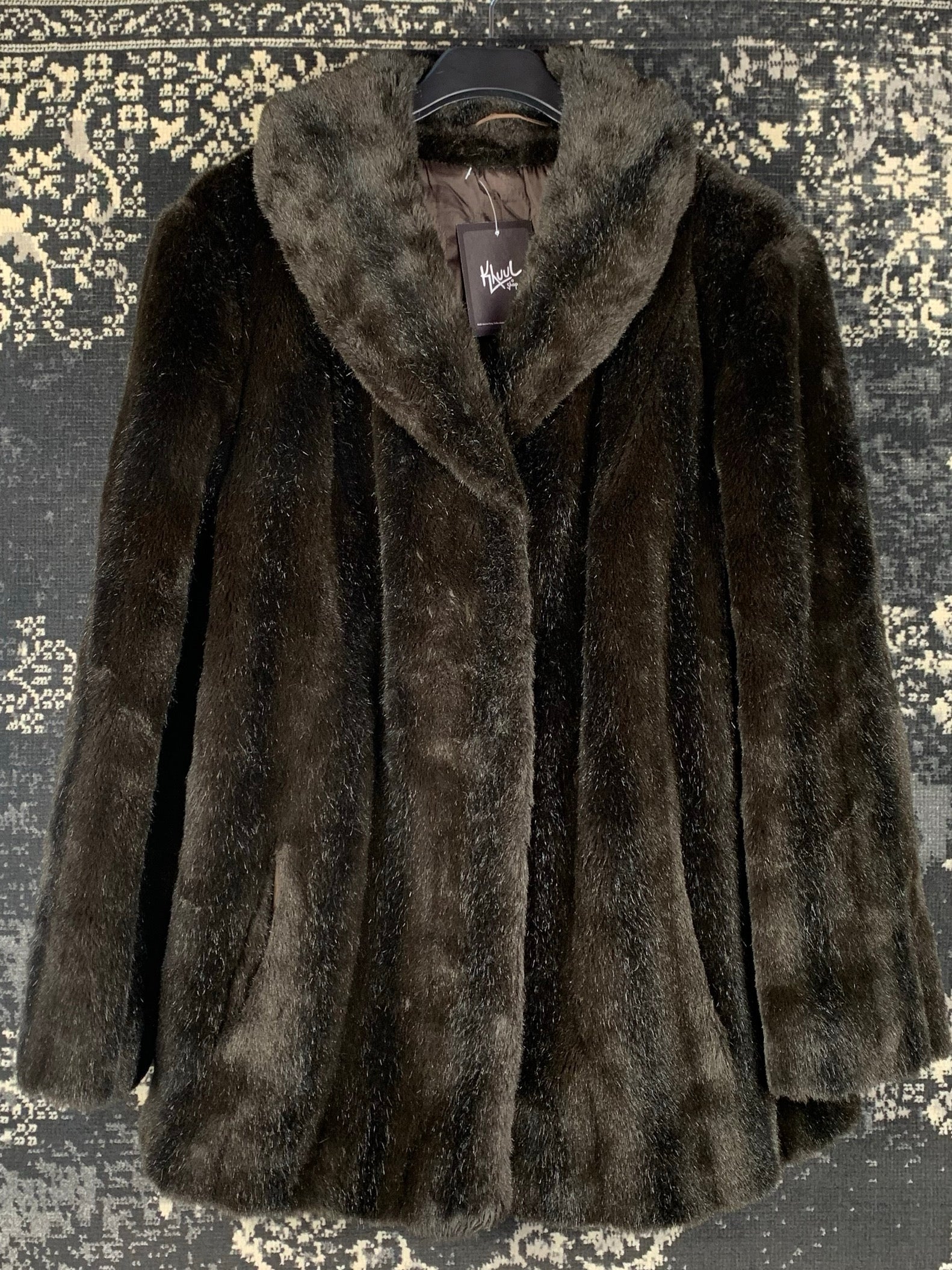 Women's Vintage Dark Brown Faux Fur Coat with Quilted Lining and Hook Closure - Elegant 90s Winter Outerwear