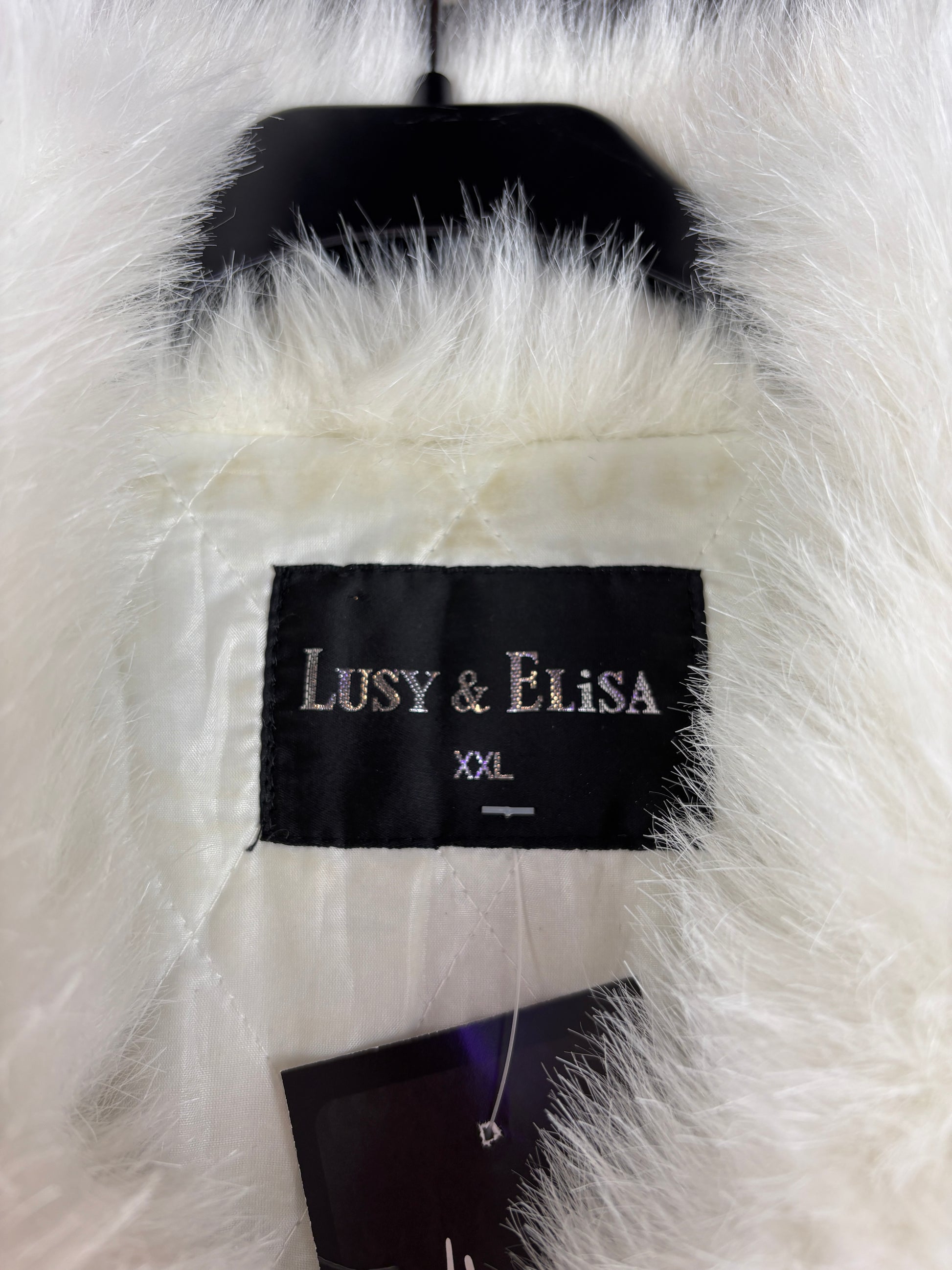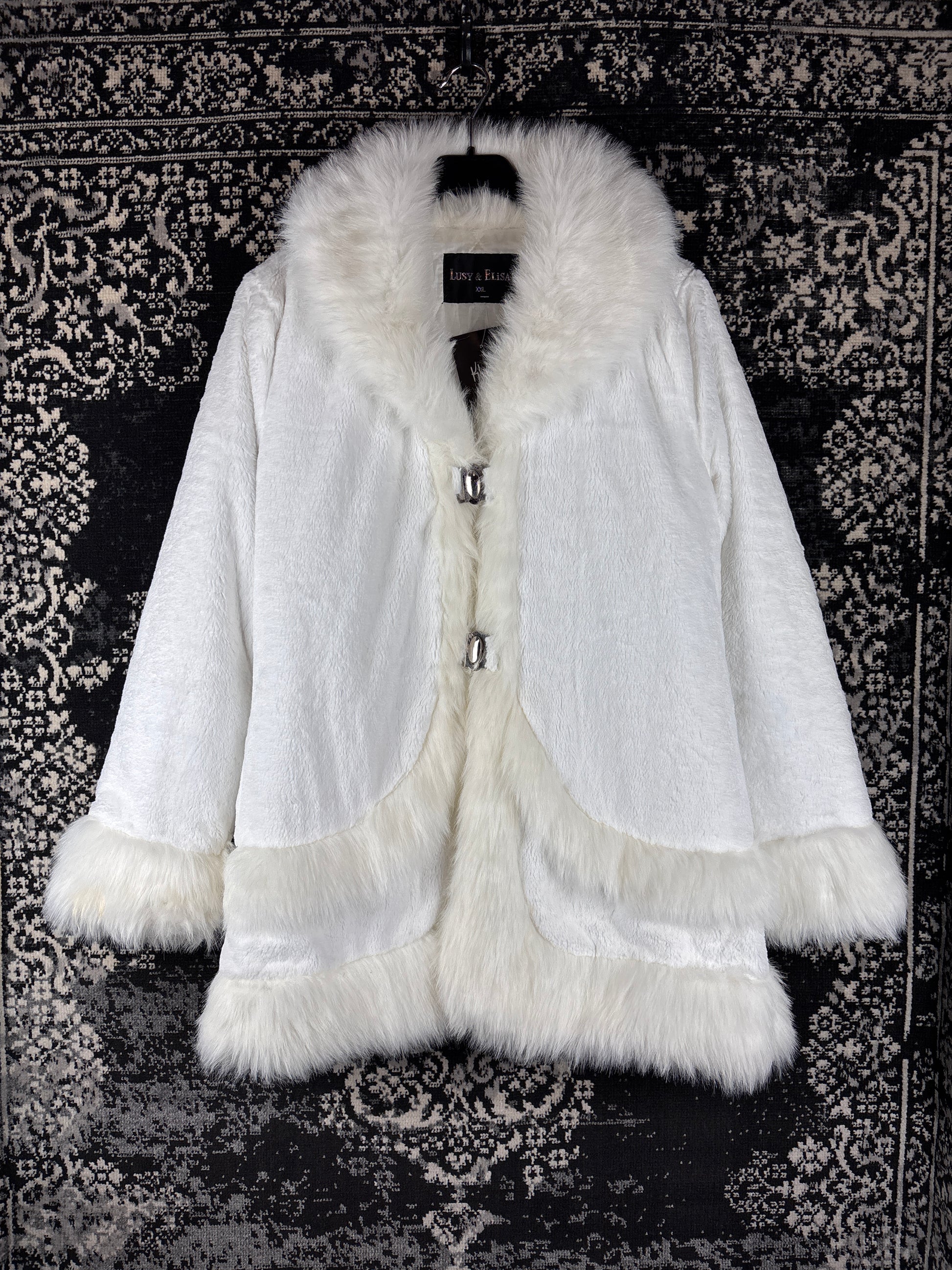 Women's Y2K Style White Soft Faux Fur Coat with Faux Fur Trim - Lusy & Elisa XXL Elegant Winter Jacket