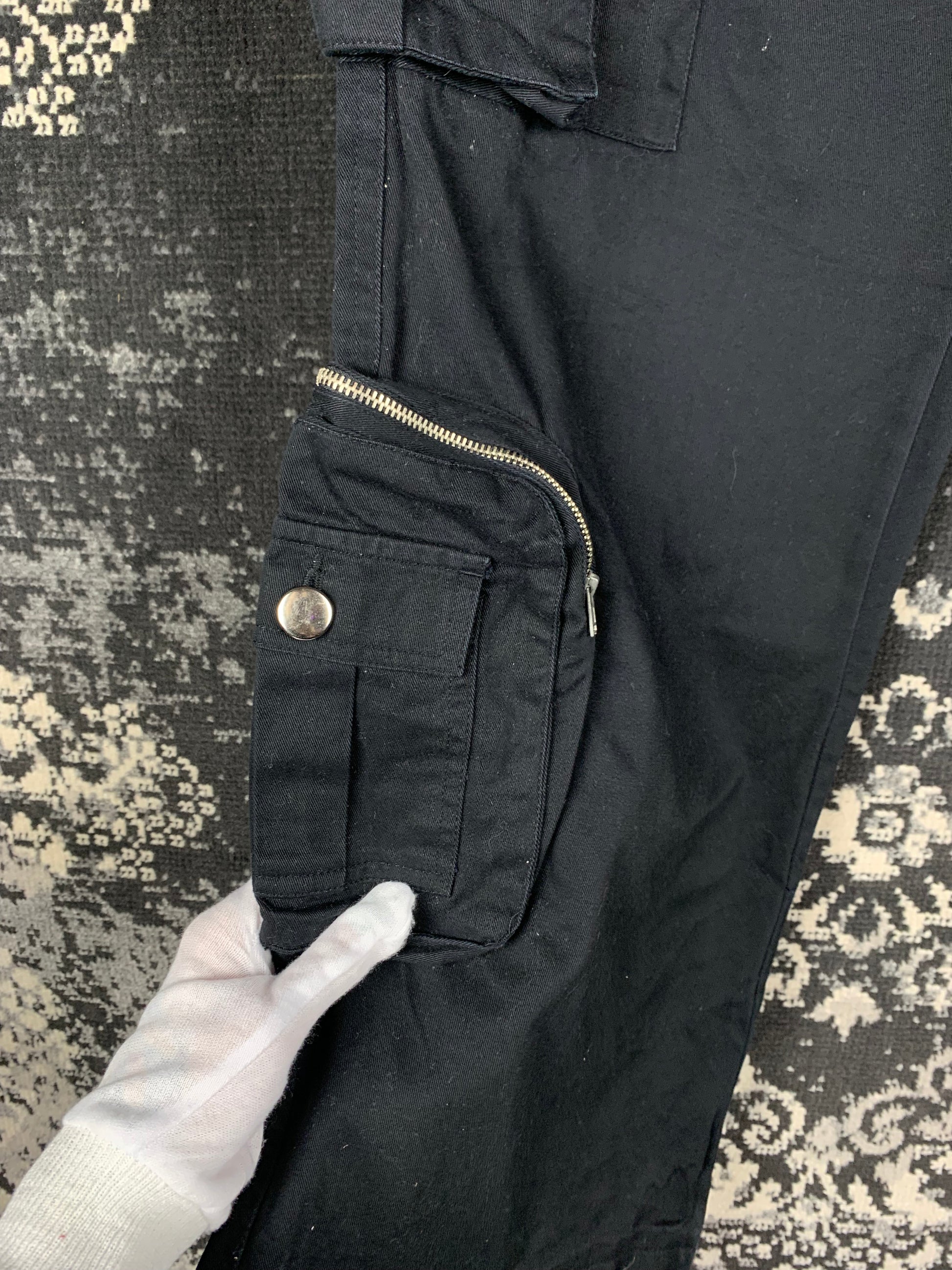 Y2K Vintage Black Men Alternative Cargo Pants with Zippered Pocket Details and Multi-Pocket Utility Design