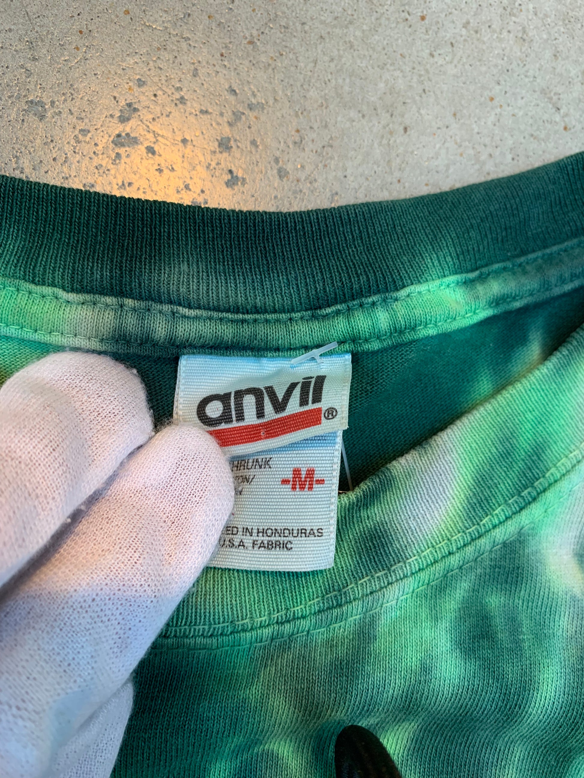 Grateful Dead Tie Dye T-Shirt Vintage Green Spiral Skull Roses Graphic Tee Men's Size M Psychedelic Band Shirt Hippie Rock Style