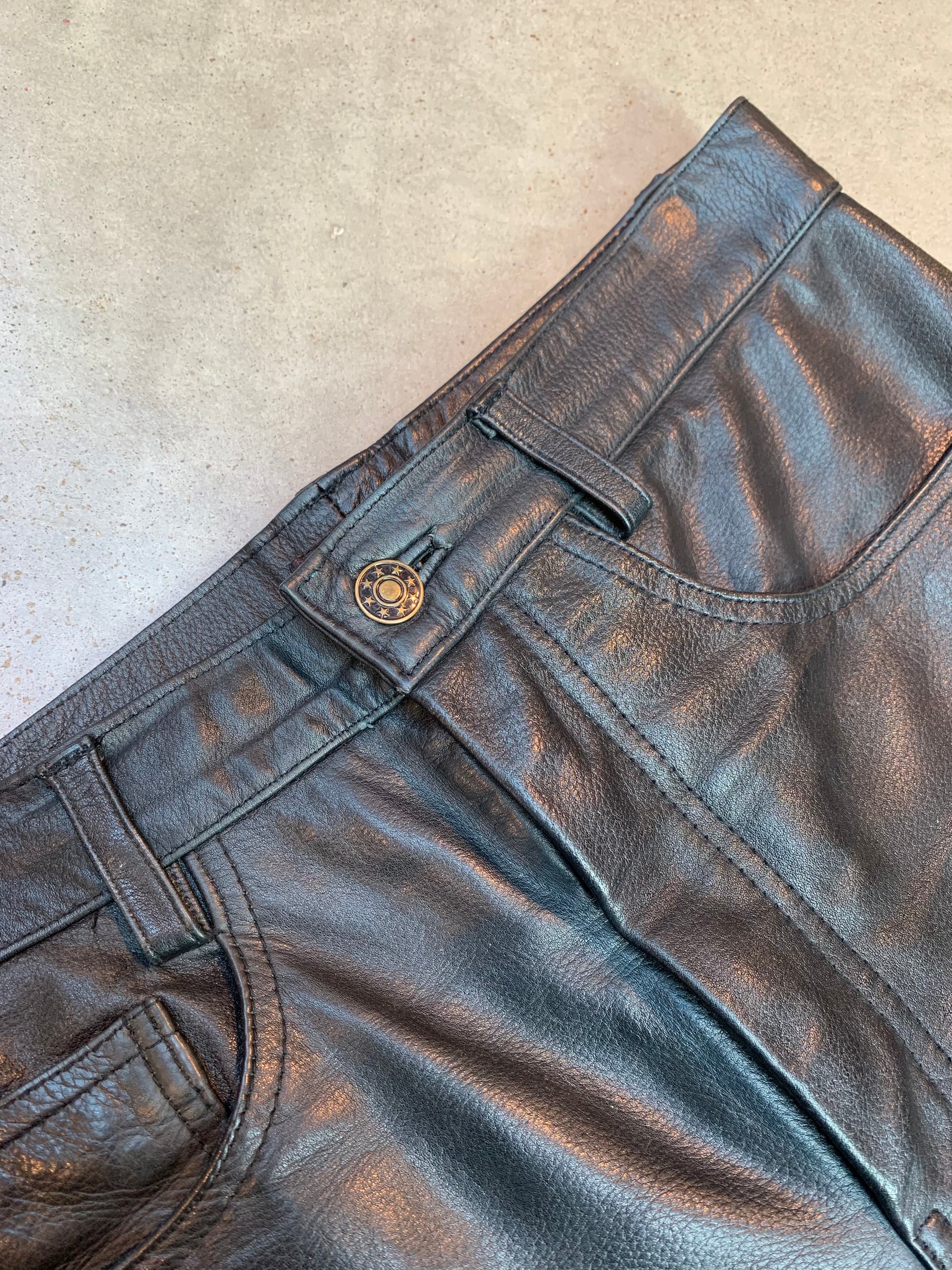 Vintage Linus Black Genuine Leather Pants Men S, Straight Leg Mid-Rise Classic Rocker Style