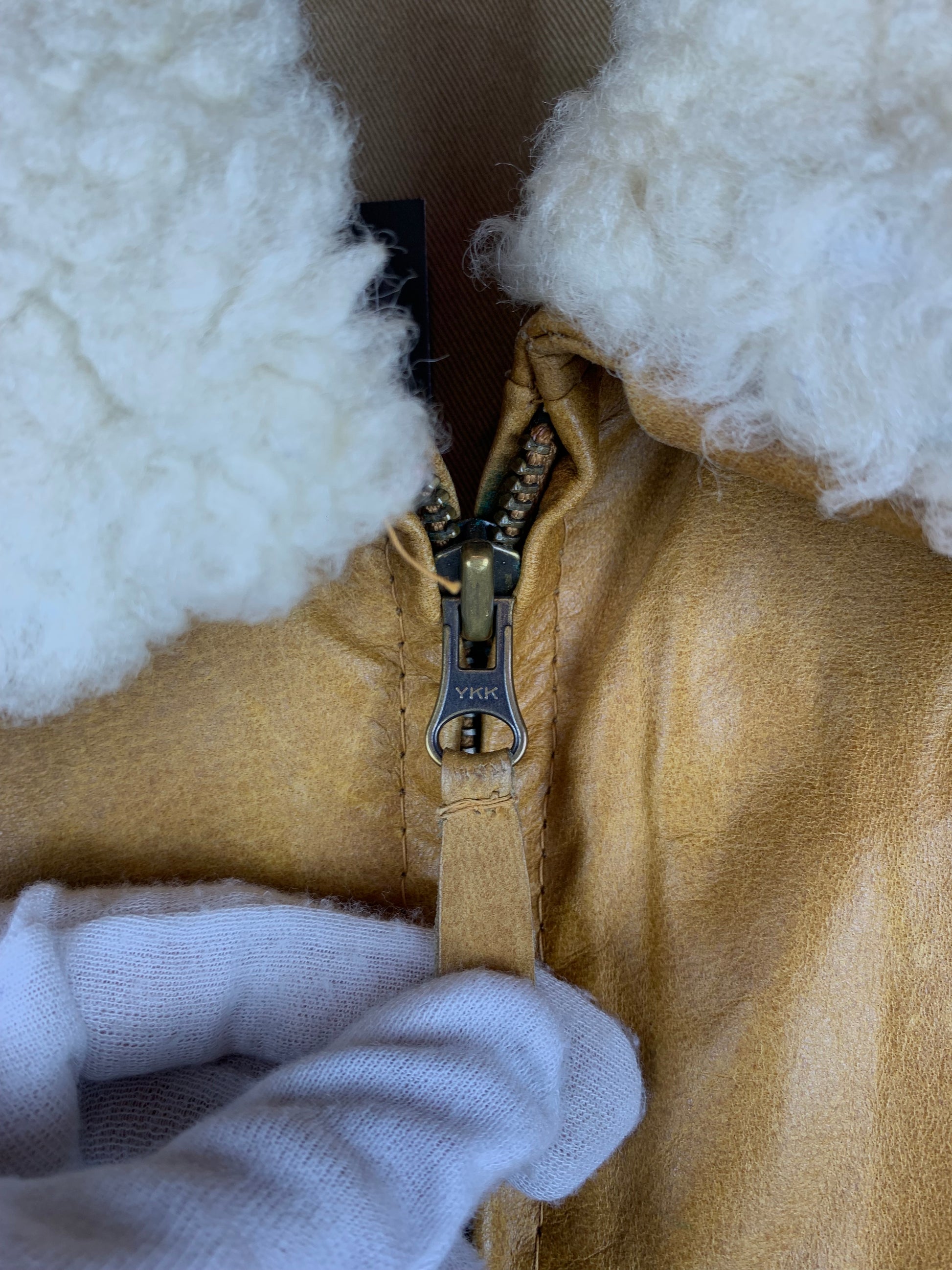 Mens Vintage Bijenkorf Basic Tan Leather Jacket with Shearling Fur Collar - Classic Winter Outerwear with YKK Zip