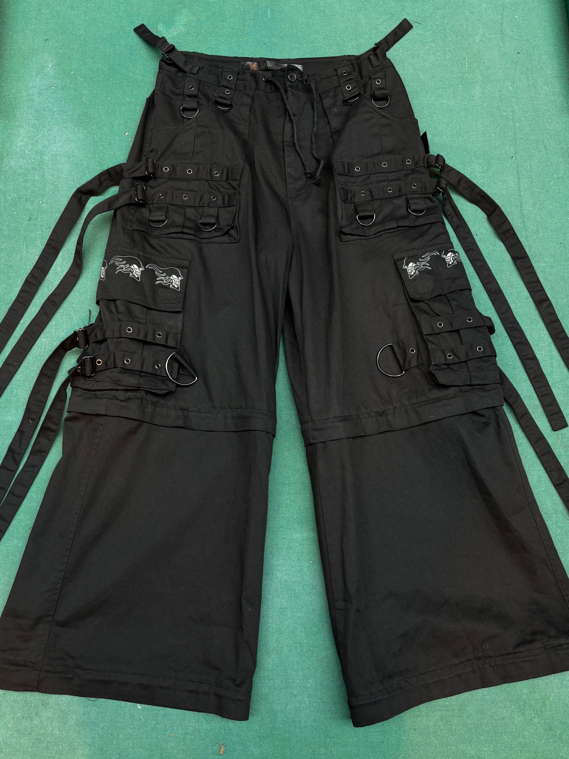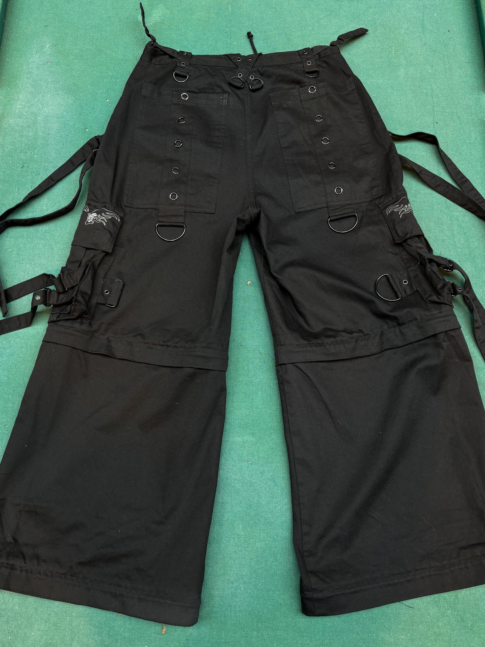 Vintage Tripp NYC Black Baggy Tech Cargo Pants with Straps and Skull Embroidery Gothic Rave Cyber Punk